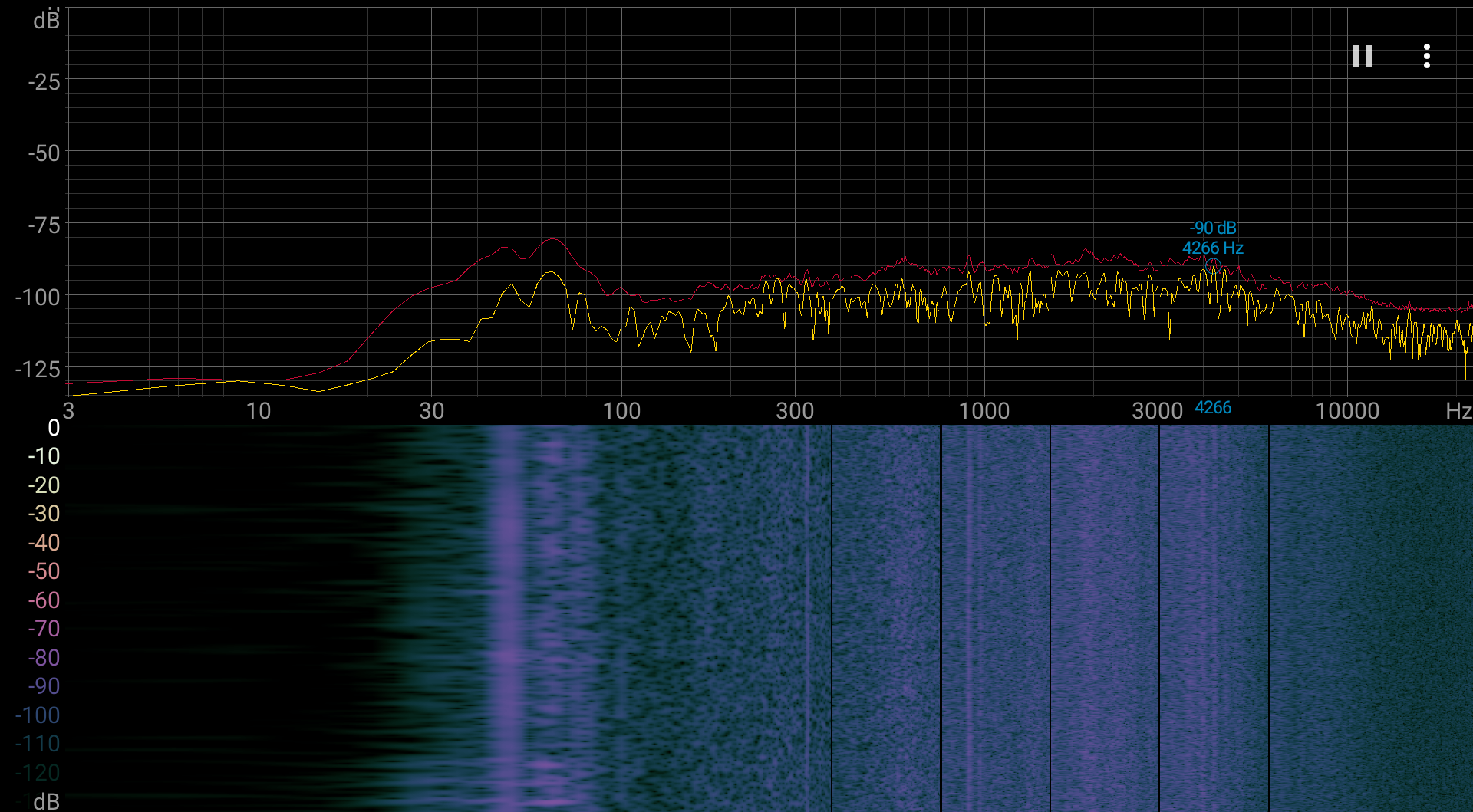 Характер шума в основном ровный и не раздражает. Спектрограммы подтверждают субъективную оценку: выраженных пиков нет.