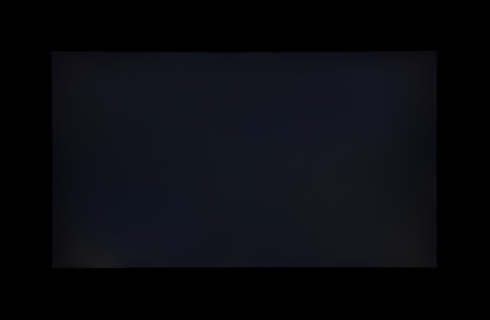 Если отступить от краев, то равномерность белого поля очень хорошая, а черного поля и как следствие контрастности гораздо хуже. Контрастность по современным меркам для данного типа матриц заметно ниже типичной. Фотография ниже дает представление о распределении яркости черного поля по площади экрана: