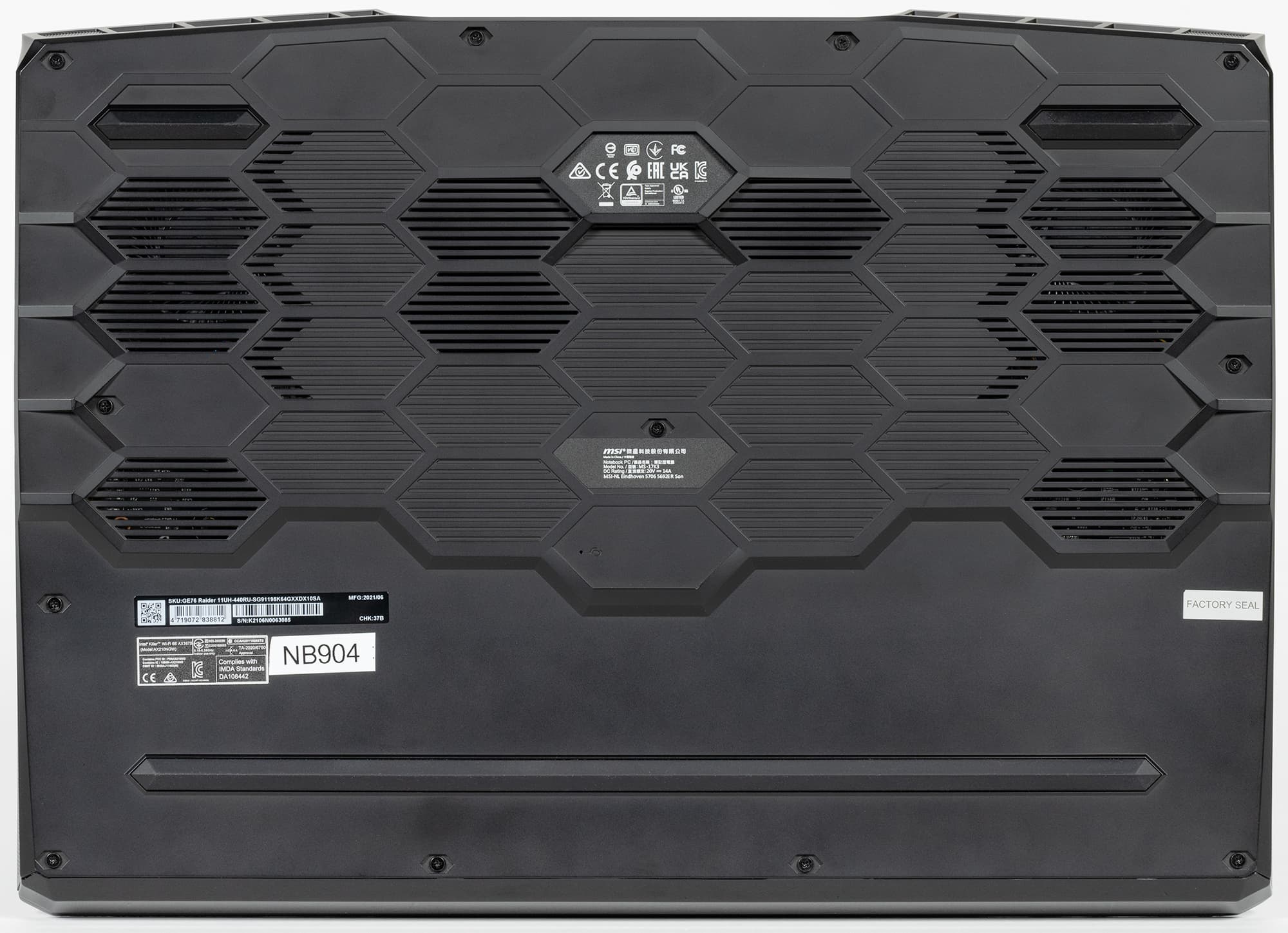 Приток холодного воздуха к кулерам осуществляется только через днище, вентиляционные отверстия на нем разбросаны достаточно причудливо и не привязаны строго к месту расположения вентиляторов. Суммарная их площадь не очень велика. Ножки сзади вроде бы не очень большие, но вся поверхность с имитацией сотовой структуры образует достаточно выступов, чтобы доступ воздуха можно было перекрыть только намеренно.