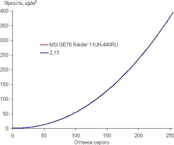 Аппроксимация полученной гамма-кривой дала показатель 2,13, что немного ниже стандартного значения 2,2, при этом реальная гамма-кривая мало отклоняется от аппроксимирующей степенной функции:
