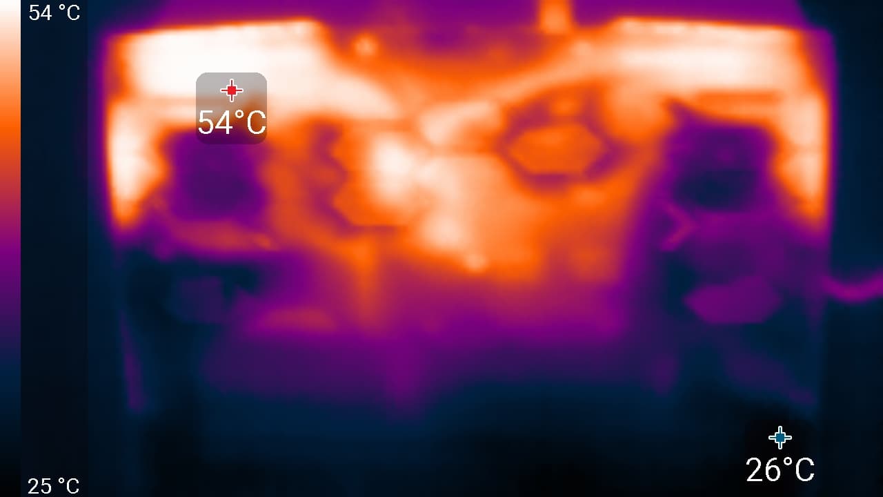 Видно, что черное поле местами в основном ближе к краю немного высветляется, но в целом с точки зрения заметности глазами равномерность хорошая. Отметим, что жесткость крышки, хоть она и изготовлена из алюминия, невелика, крышка слегка деформируется при малейшем приложенном усилии, а от деформации сильно меняется характер засветки черного поля. Впрочем, без внешних воздействий все возвращается к исходному варианту с хорошей равномерностью.