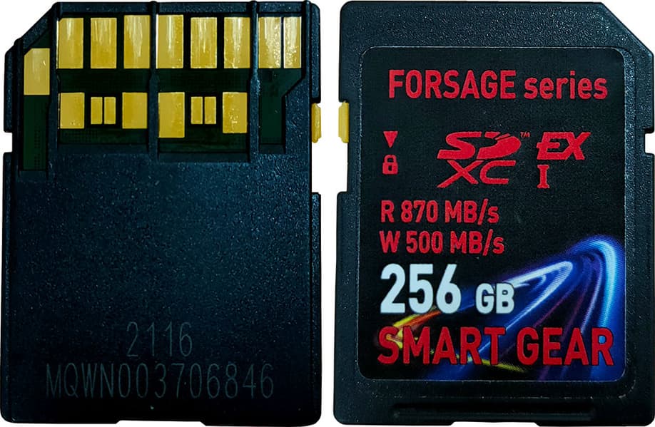 SDexpress — новый стандарт, он соответствует спецификации SD 7.0 и переводит работу с картами памяти на протокол NVMe поверх интерфейса PCI Express. Важно, что стандарт сохраняет совместимость с предыдущими картами и картоводами: карточку SD (вплоть до UHS-I) можно прочесть в новом картоводе, а новые карты можно использовать в старой фототехнике и прочитать в старом картоводе, хотя и гораздо медленнее, чем они позволяют. Скоростной режим реализуется за счет использования второго ряда контактов, скорость интерфейса при этом соответствует одной линии PCIe 3.0 — до 1 ГБ/с. Стандарт перспективный в обоих смыслах: в реальной фото- и видеотехнике он на сегодняшний день не применяется, и даже карту для тестов мы нашли с трудом. Однако его будущее видится вполне светлым, а 800 МБ/с на чтение и 500 МБ/с на запись с такой картой мы получаем уже сейчас.