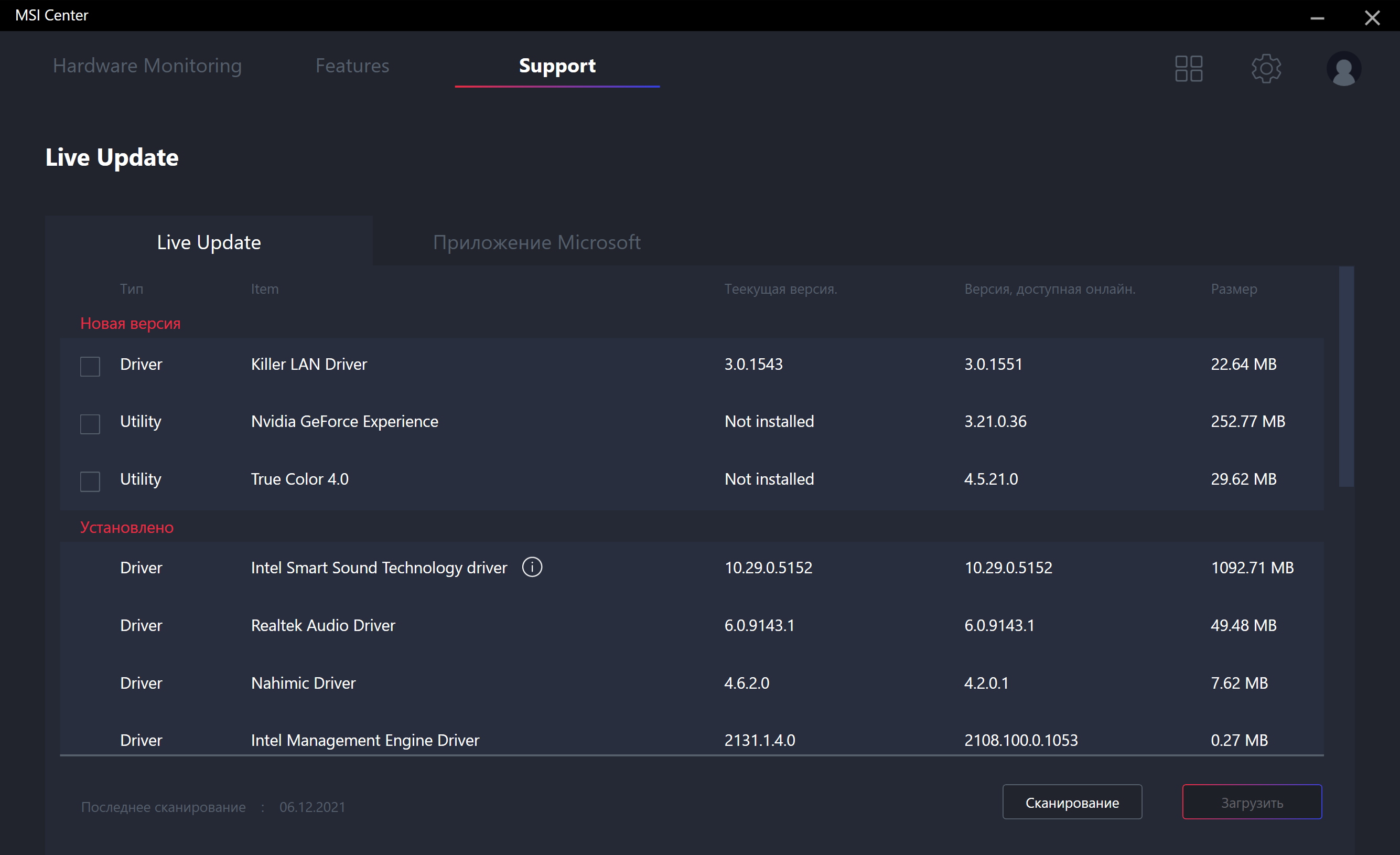 Ноутбук поставляется с Windows 10 Домашней редакции, ближе к концу года или в начале следующего обещано обновление до Windows 11. Как всегда у MSI, предустановлено большое количество фирменных утилит, только вместо более привычного для игровых ноутбуков компании Dragon Center «главным» приложением является MSI Center.