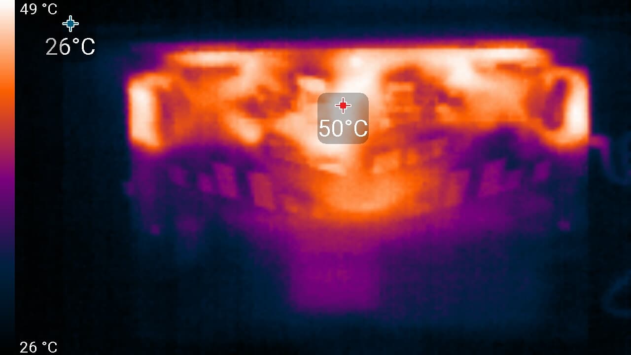 Выходные вентиляционные отверстия расположены везде, где можно, но поскольку крышка в открытом состоянии перекрывает заднюю панель, там прорези в корпусе расположены в верхней части, и горячий воздух направляется немного вверх, нагревая нижнюю часть экрана.