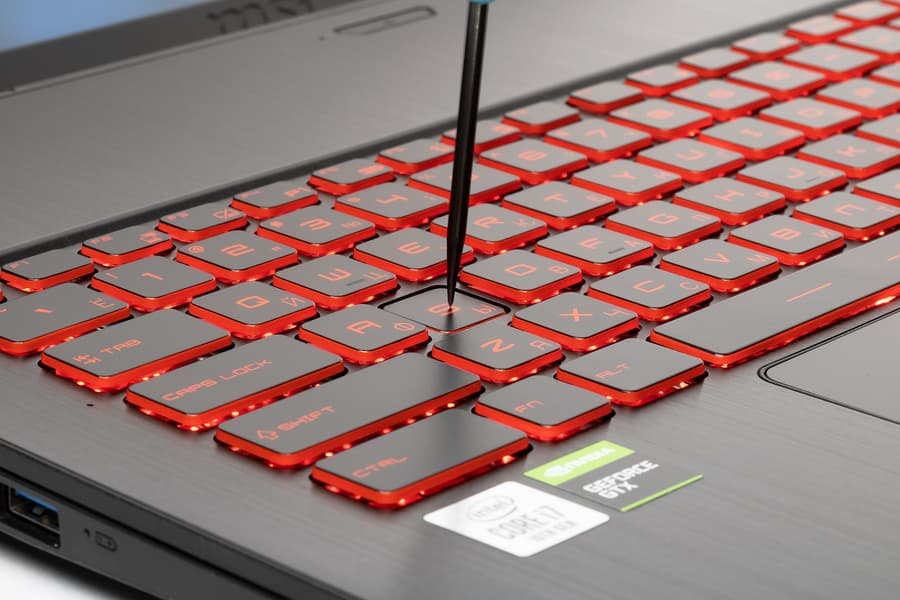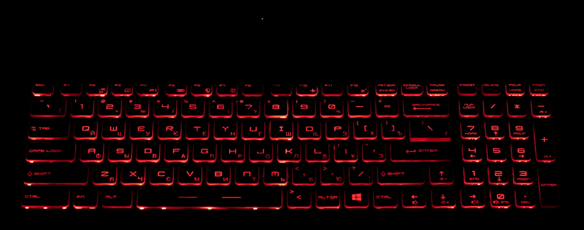 В 17-дюймовом ноутбуке достаточно места для размещения клавиатуры с цифровым блоком. Правда, довольно большие поля по бокам позволяют предположить, что это клавиатура от 15-дюймовой модели, но у GF65 Thin она другая, без цифрового блока. Все основные клавиши здесь полноразмерные, а кнопки цифрового блока чуть уменьшены. Кнопки верхнего ряда, к сожалению, традиционно половинной высоты. Курсорные стрелочки тоже полноразмерные и нормально расположены, но они не обособлены, поэтому управляться с ними вслепую не так удобно. Клавиши для редактирования представлены усеченным набором, их всего 4: Home/PgUp и End/PgDn совмещены. Честно говоря, это очень странное решение с учетом того, что на клавиатуре есть мало кому нужные в ноутбуках Prt Scr, Scroll Lock и Pause/Break. Впрочем, если вы нечасто используете цифровой блок для ввода цифр, можно использовать при редактировании кнопки этого блока. Кроме того, в настройках Dragon Center можно поменять местами Fn и Win, тогда с аккордами, использующими Fn (они в основном актуальны для кнопок у правого края), проблем быть не должно. Дырочка у края слева — индикатор Caps Lock (индикатора Num Lock у ноутбука нет).
