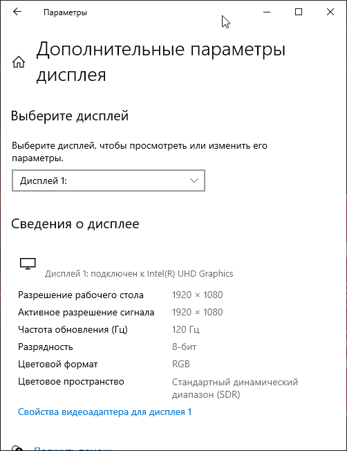 В настройках экрана на выбор доступны две частоты обновления — 48 и 120 Гц.