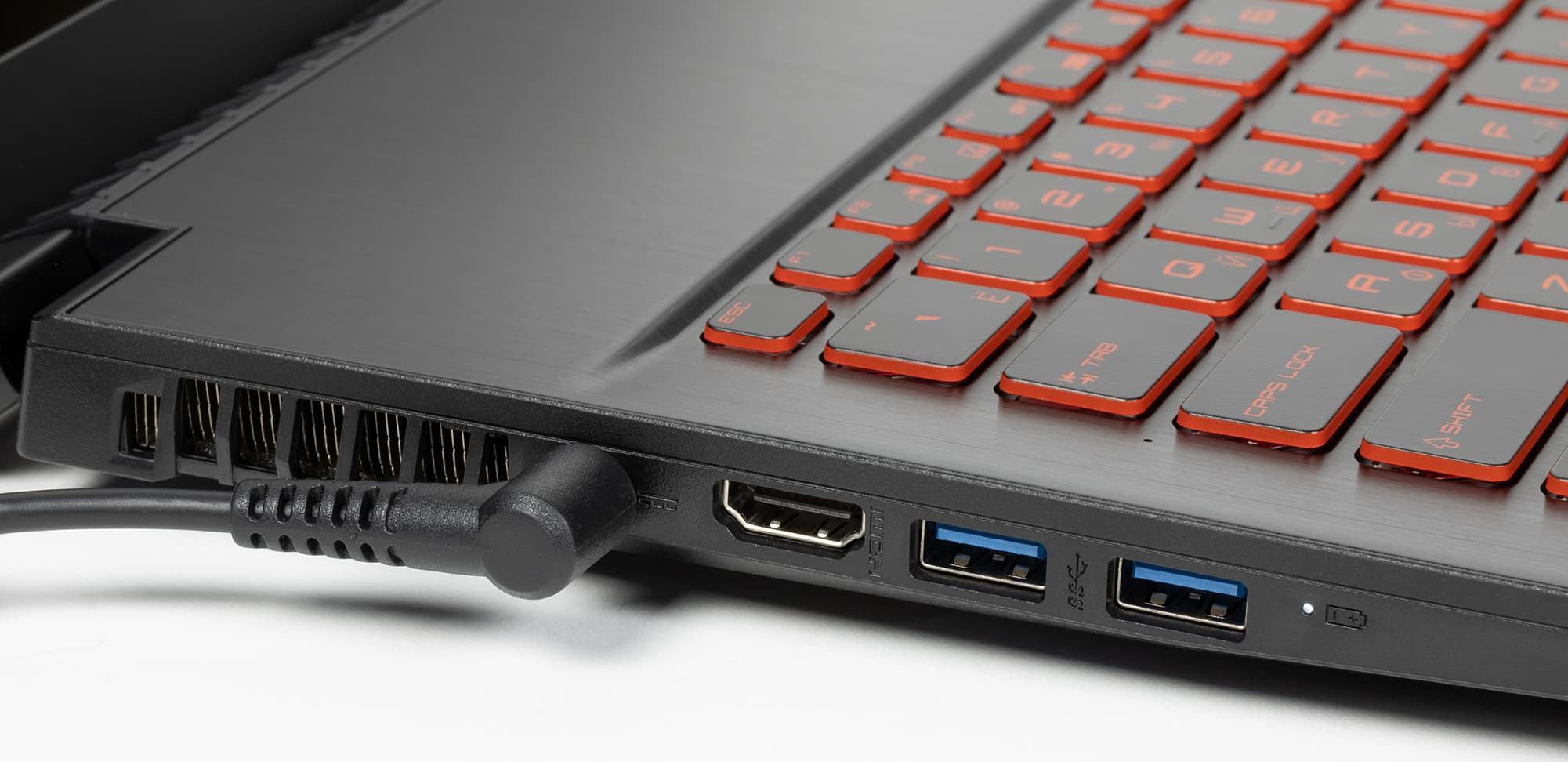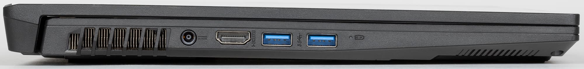 На левой боковой панели находятся разъем кабеля питания, видеовыход HDMI и 2 порта USB 3.2 Gen1 Type-A.