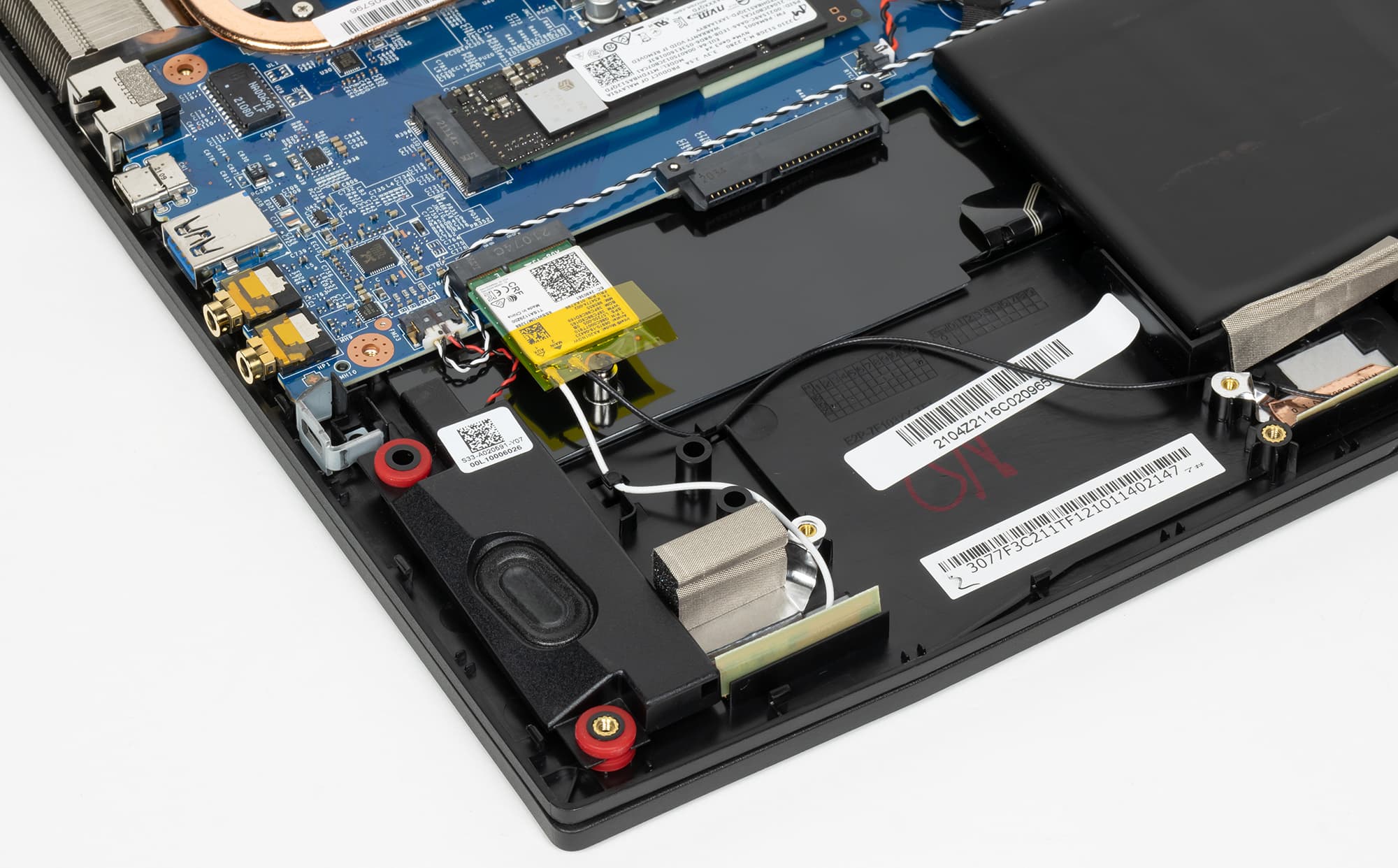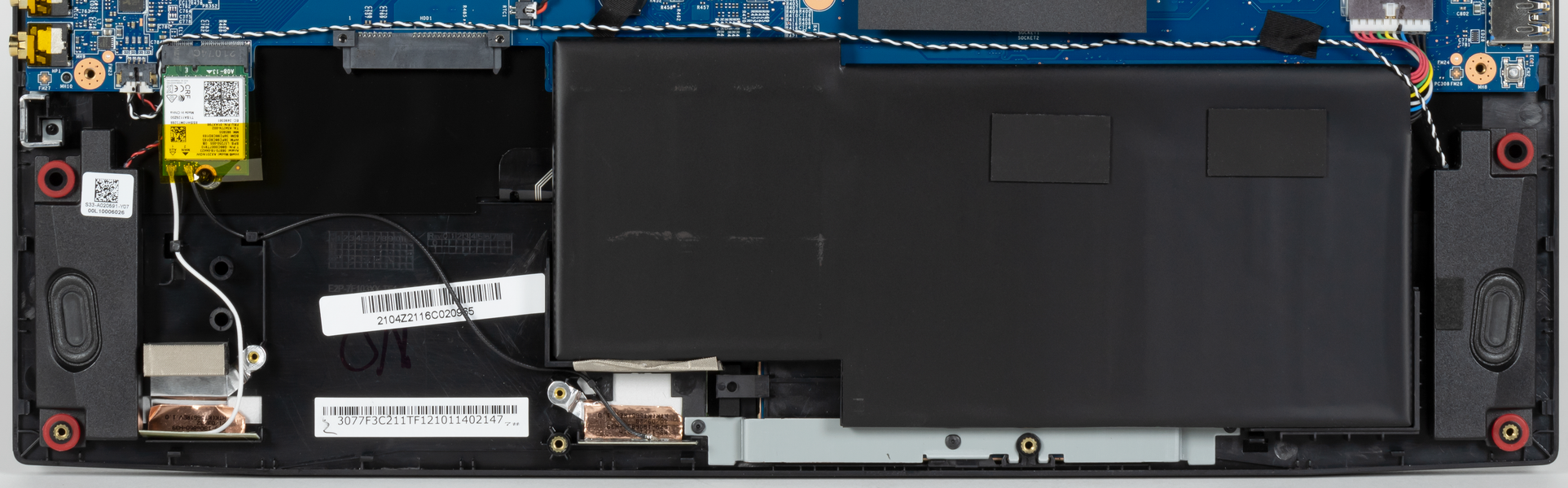 Между батареей и адаптером беспроводной сети имеется свободный отсек с разъемом SATA, в который можно установить жесткий диск или SSD-накопитель форм-фактора 2,5 дюйма.