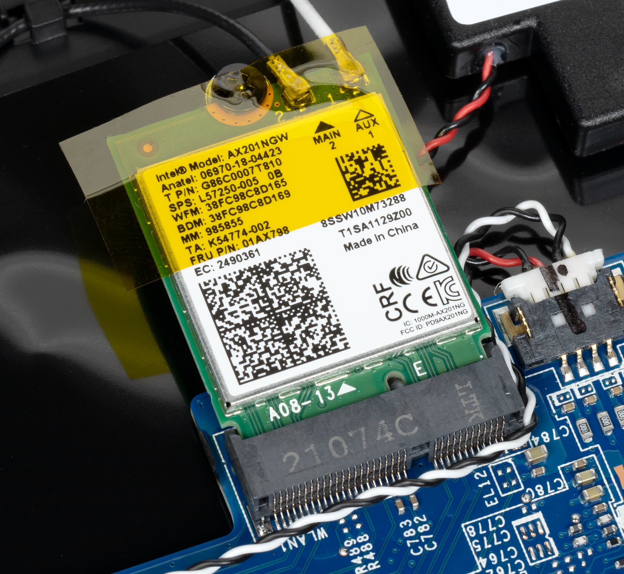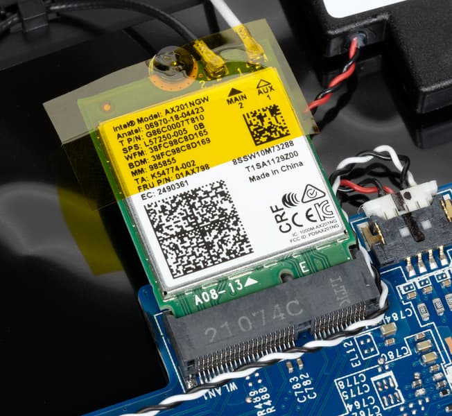 Беспроводной адаптер Intel AX201NGW не прикрыт SSD-накопителем и другими компонентами, и это хорошо.