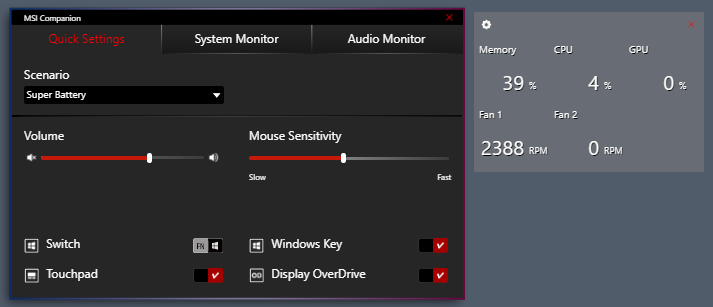 MSI Companion позволяет отслеживать параметры работы и менять некоторые настройки.