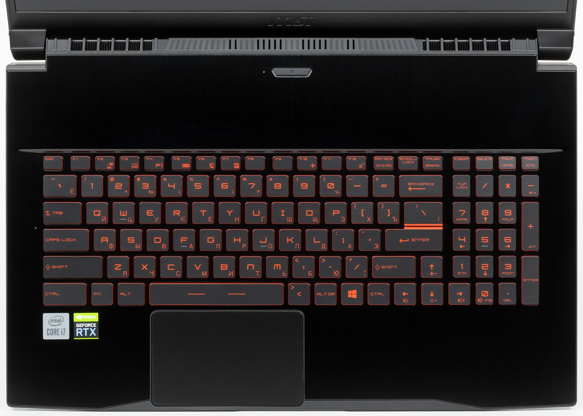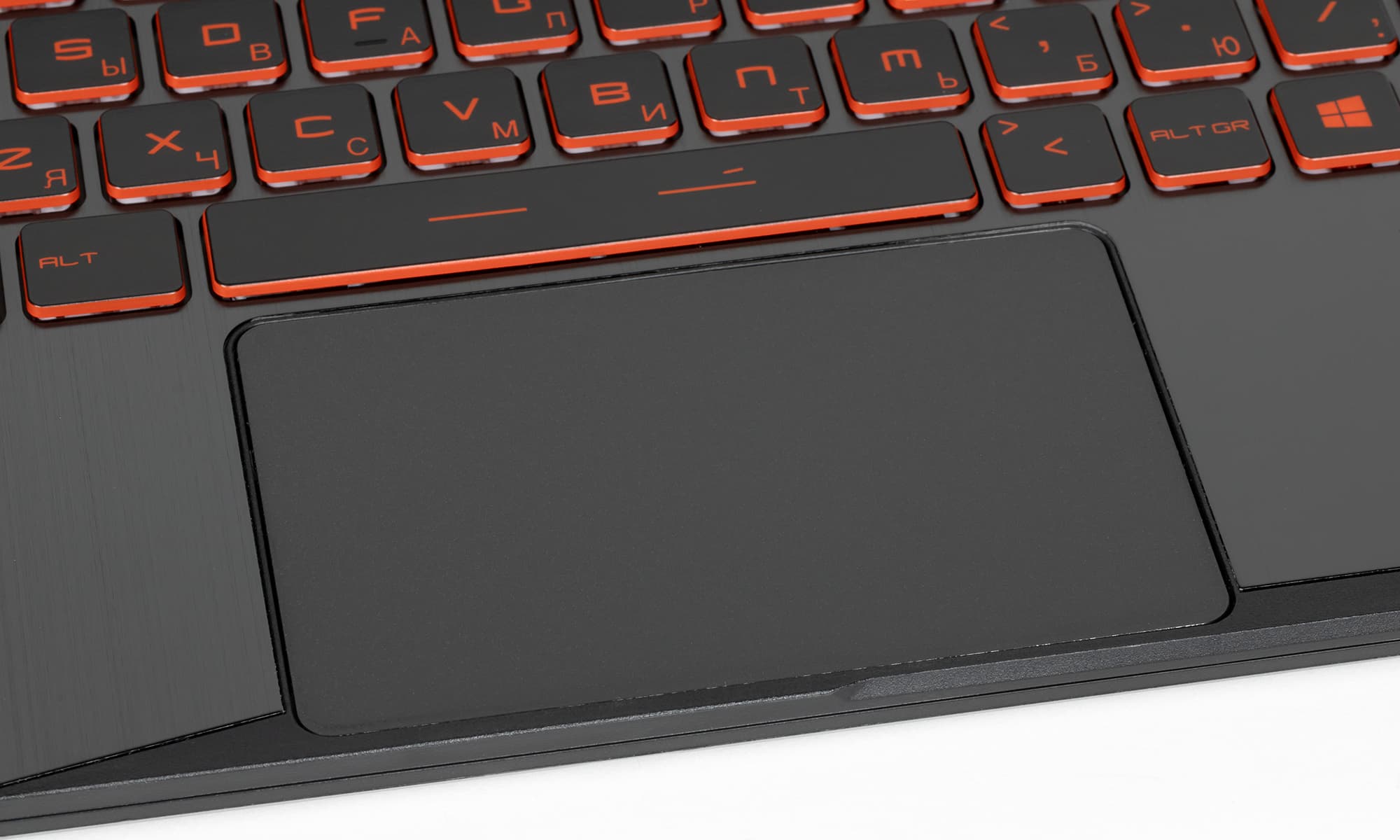 У нашего героя хватает места для размещения полноценной клавиатуры с отдельным цифровым блоком. Все основные клавиши полноразмерные, но кнопки цифрового блока чуть уменьшены по ширине, а клавиши верхнего ряда — по высоте. Курсорные стрелки полноразмерные, расположены правильно, но при этом не отделены пространством от соседних.