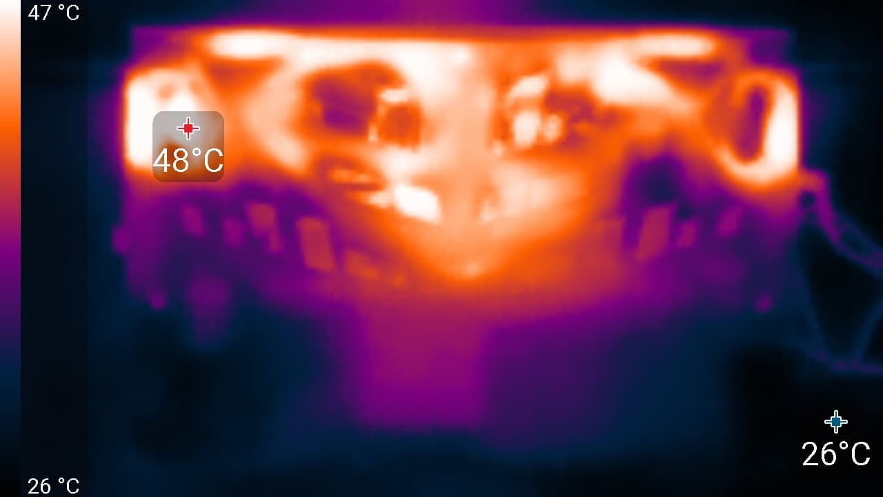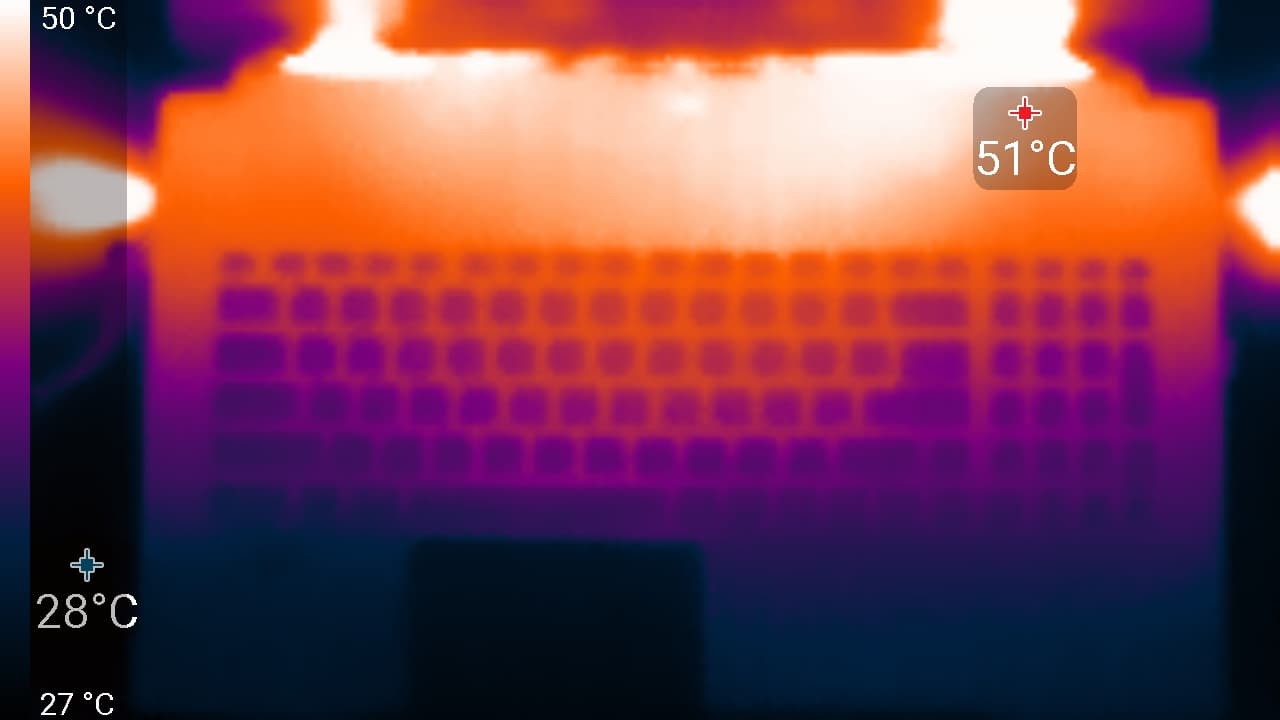 Ниже приведены термоснимки, полученные после долговременной работы ноутбука под максимальной нагрузкой на CPU и GPU (профиль Экстремальная производительность):