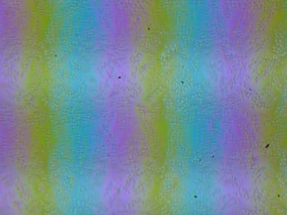 Зерно этих дефектов в несколько раз меньше размеров субпикселей (масштаб этих двух фотографий примерно одинаковый), поэтому фокусировка на микродефектах и «перескок» фокуса по субпикселям при изменении угла зрения выражены слабо, из-за этого нет и «кристаллического» эффекта.