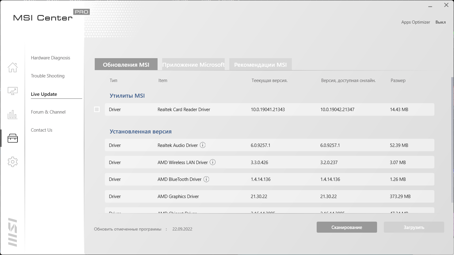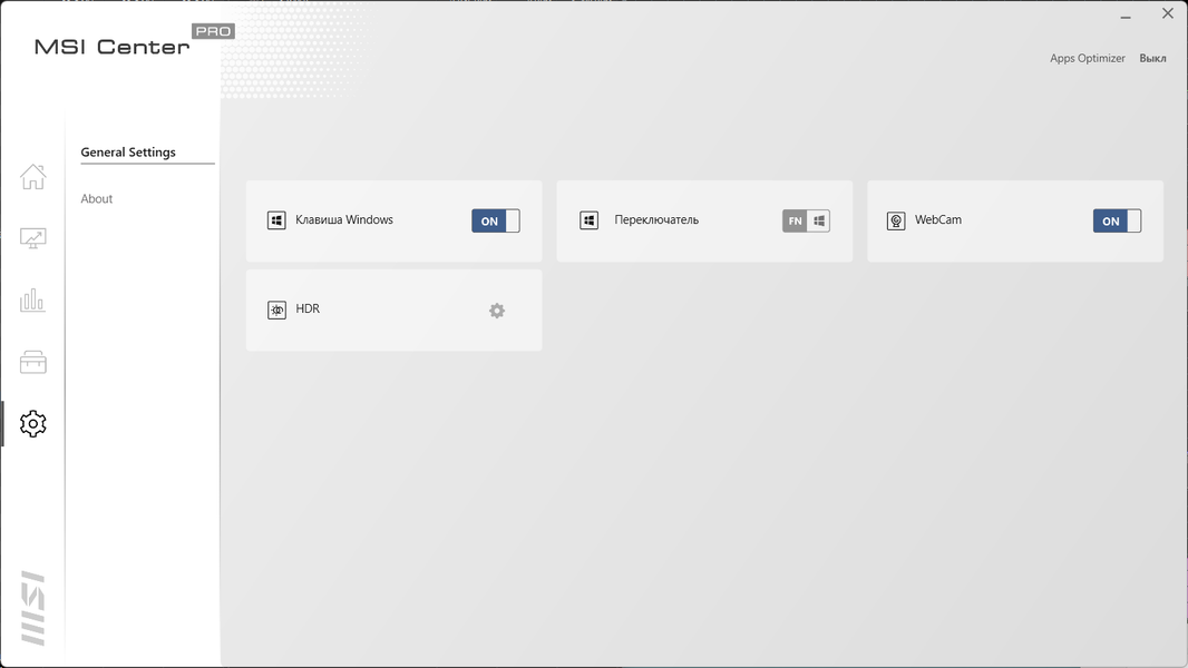 Ноутбук поставляется с Windows 11 Домашней редакции, доступен вариант без ОС, а MSI рекомендует профессиональную редакцию Windows. Фирменная утилита MSI Center всего одна, в данном случае она получила приставку Pro, чтобы отразить некую «рабочую» функциональность. Мы из таковой нашли только возможность выставить приоритет выполнения выбранных пользователем приложений.