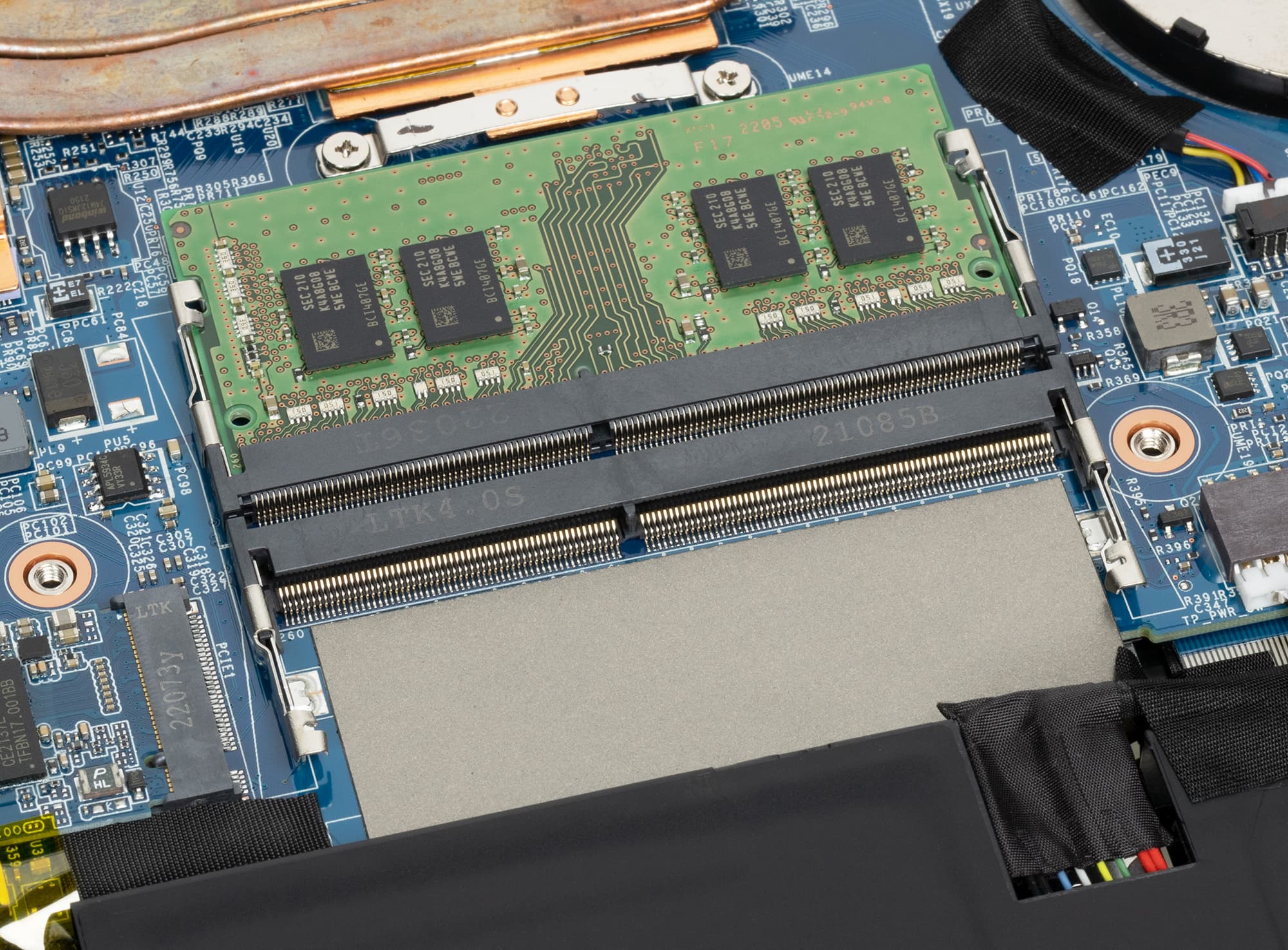 Сняв нижнюю панель корпуса, можно получить доступ к кулерам, батарее, съемному беспроводному сетевому адаптеру, SSD-накопителю в слоте M.2 и единственному модулю памяти в слотах SO-DIMM. Имеется еще один слот M.2, в который можно установить второй накопитель. Также есть возможность легко проапгрейдить память.