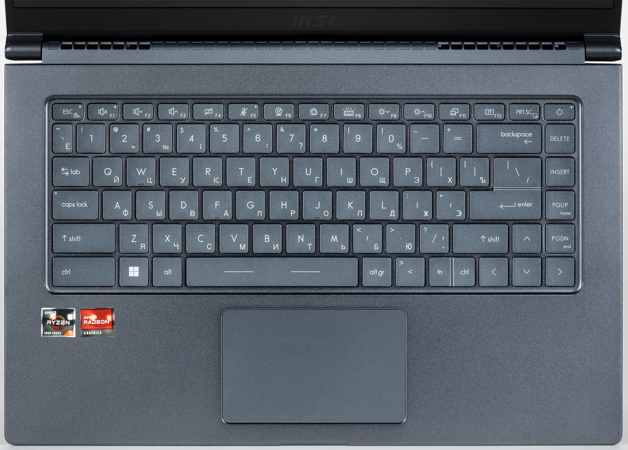 Также можем предупредить, что использованный ультрамобильный процессор AMD и его встроенная графика не ориентированы ни на профессиональное, ни на игровое применение. Скорее, это такой универсальный ноутбук и для сотрудников офиса, и для типичных домашних пользователей. Во всяком случае, сама компания MSI, не убрав слова «бизнес-ноутбук», говорит про эту серию у себя на сайте, используя выражения «для динамичной жизни», «в учебе» и «сопровождать вас, куда бы вы ни направились».