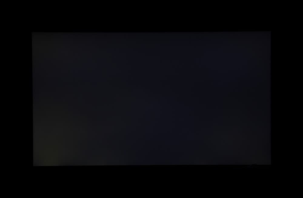 Если отступить от краев, то равномерность белого поля очень хорошая, а черного поля и, как следствие, контрастности — гораздо хуже. Контрастность по современным меркам для данного типа матриц немного выше типичной. Фотография ниже дает представление о распределении яркости черного поля по площади экрана: