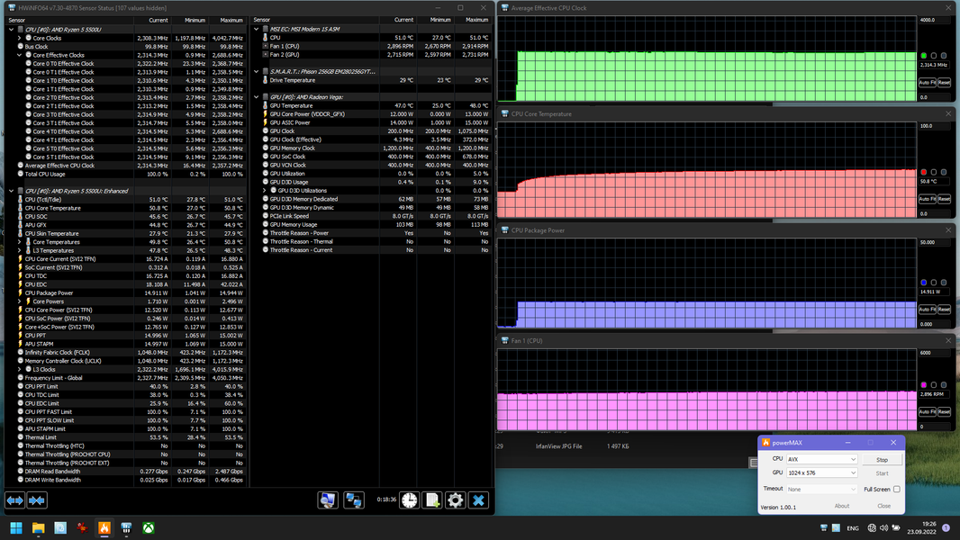 | Максимальная нагрузка на процессор и видеокарту | 1,80 | 51 | 15 | 2900/2700 |