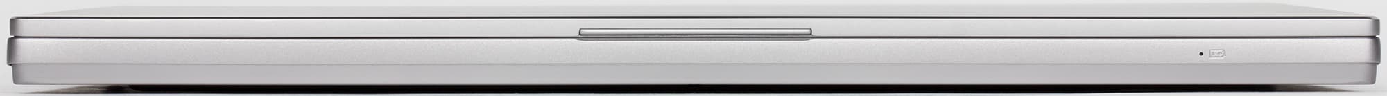 Индикатор зарядки ноутбука располагается не у разъема питания, а на переднем торце корпуса, он горит очень ярким белым цветом до самого конца (до зарядки аккумулятора на 100%), а при разрядке до 5% загорается оранжевым.