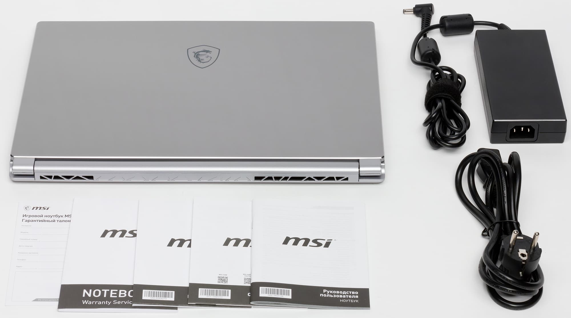 Ноутбук поставляется в изящной тонкой картонной коробке без ручек для переноски (разумеется, есть и большая транспортировочная коробка из некрашеного картона), в комплекте довольно много макулатуры, а также довольно крупный 230-ваттный адаптер питания и сетевой шнур.