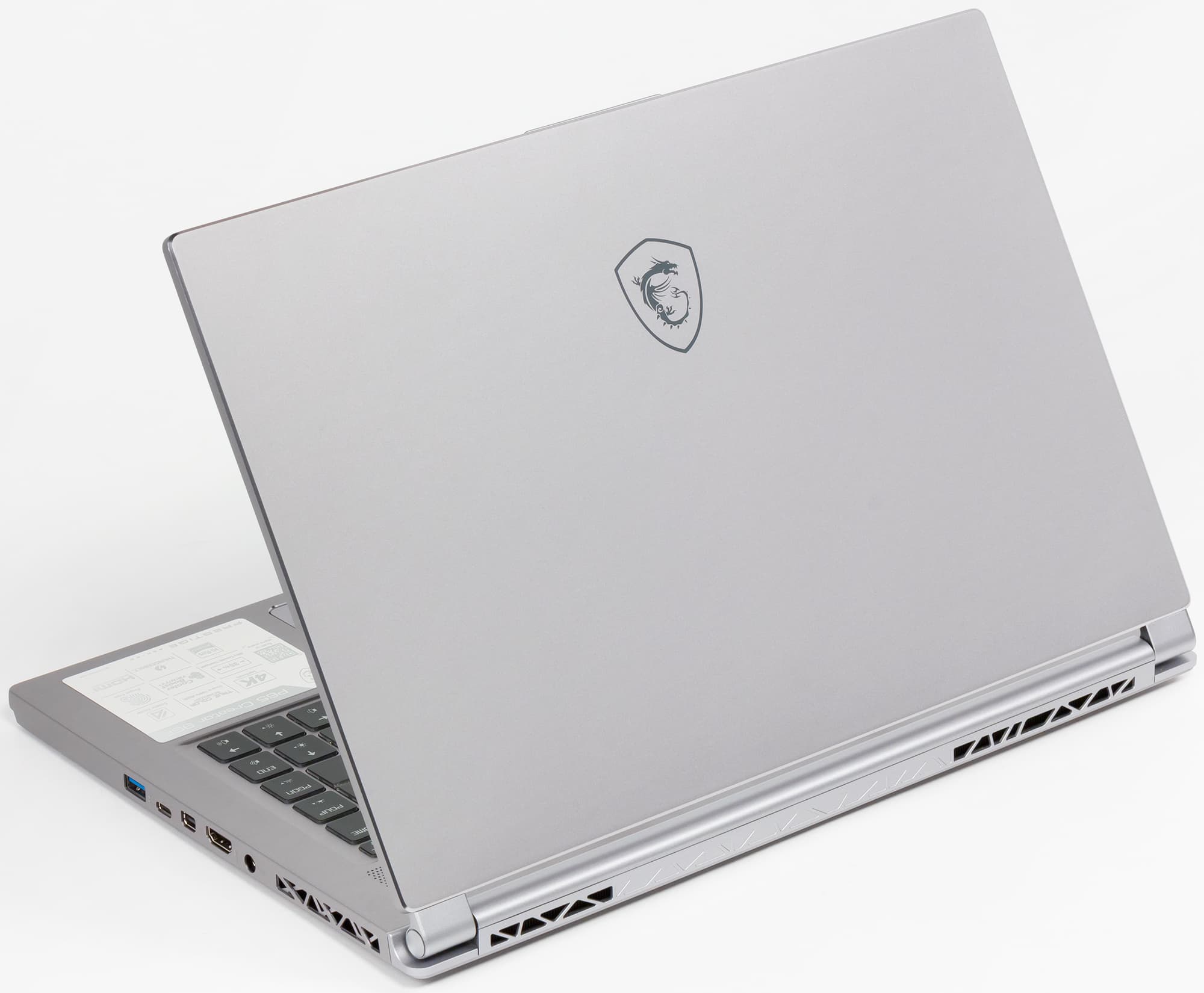 Большинство ноутбуков, которые мы тестируем, пытаются создать впечатление более компактных, чем они есть на самом деле. В ход идет переменная толщина корпуса (у переднего края ноутбук тоньше, иногда чуть ли не заострен), хитрая форма боковых скосов и пр. На этом фоне MSI P65 Creator выглядит как минимум интересно: у него корпус в форме почти честного параллелепипеда, лишь со слегка скругленными углами.