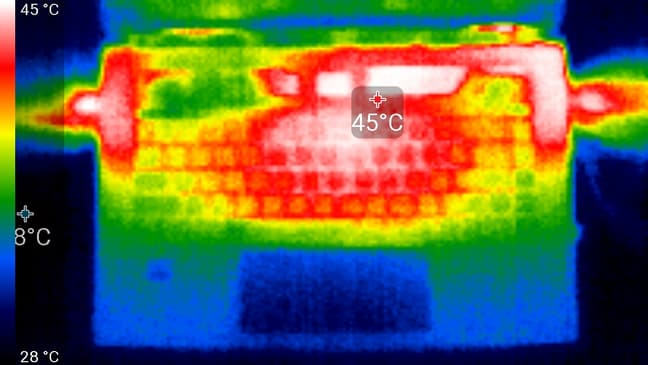 Ниже приведены термоснимки, полученные после долговременной работы ноутбука под максимальной нагрузкой на CPU и GPU: