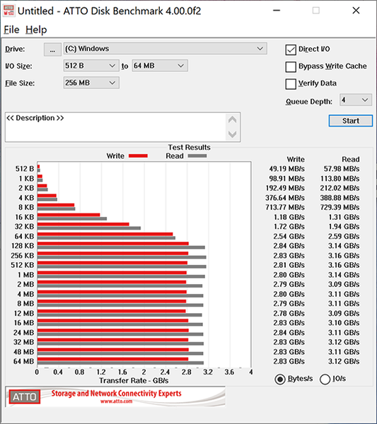 В ноутбуке используется 8-ядерный (16-поточный) процессор Intel Core i9-9880H с базовой частотой 2,3 ГГц и максимальной частотой 4,8 ГГц. Характеристики очень внушительные, это один из самых производительных мобильных процессоров Intel на сегодняшний день. В то же время, TDP процессора составляет 45 Вт, и как мы видели при тестировании под нагрузкой, в долговременной перспективе его потребление ограничивается именно этой величиной. Таким образом, типичные десктопные процессоры высокого уровня по-прежнему остаются недосягаемы. Улучшить ситуацию может очень быстрый системный накопитель (скорость в типовых задачах в заметной степени определяется операциями чтения с диска и записи на него), так что давайте для начала оценим производительность этого компонента.