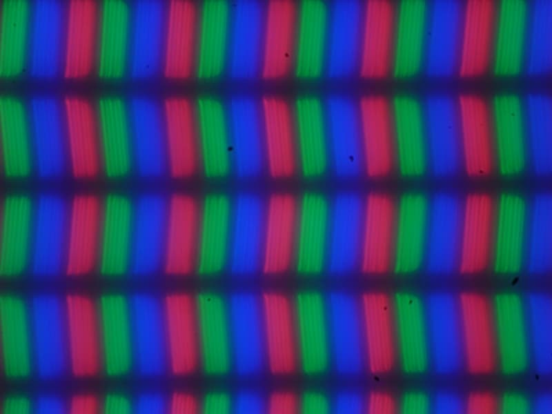 В MSI P65 Creator 9SF используется матрица типа IPS. Микрофотографии демонстрируют типичную для IPS структуру субпикселей (черные точки — это пыль на матрице фотоаппарата):
