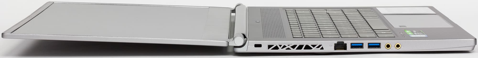 Ноутбук не поражает своей внешностью, это не агрессивная игровая машина, а нечто спокойное. Для такой начинки корпус совсем не тяжелый и не большой. Здесь отличный 4K-экран, богатые возможности подключения дополнительных мониторов. Клавиатура и тачпад не лишены недостатков, но имеют свои достоинства. Сканер отпечатков пальцев очень удобен на практике. У ноутбука довольно емкая батарея, в режиме пишмашинки он может протянуть почти целый рабочий день. Очень громкая встроенная акустика позволит заглушить шум кулера грохотом выстрелов и взрывов в играх. На наш взгляд, за удачное применение топовых комплектующих ноутбук вполне заслуживает награду: