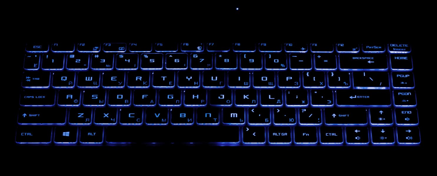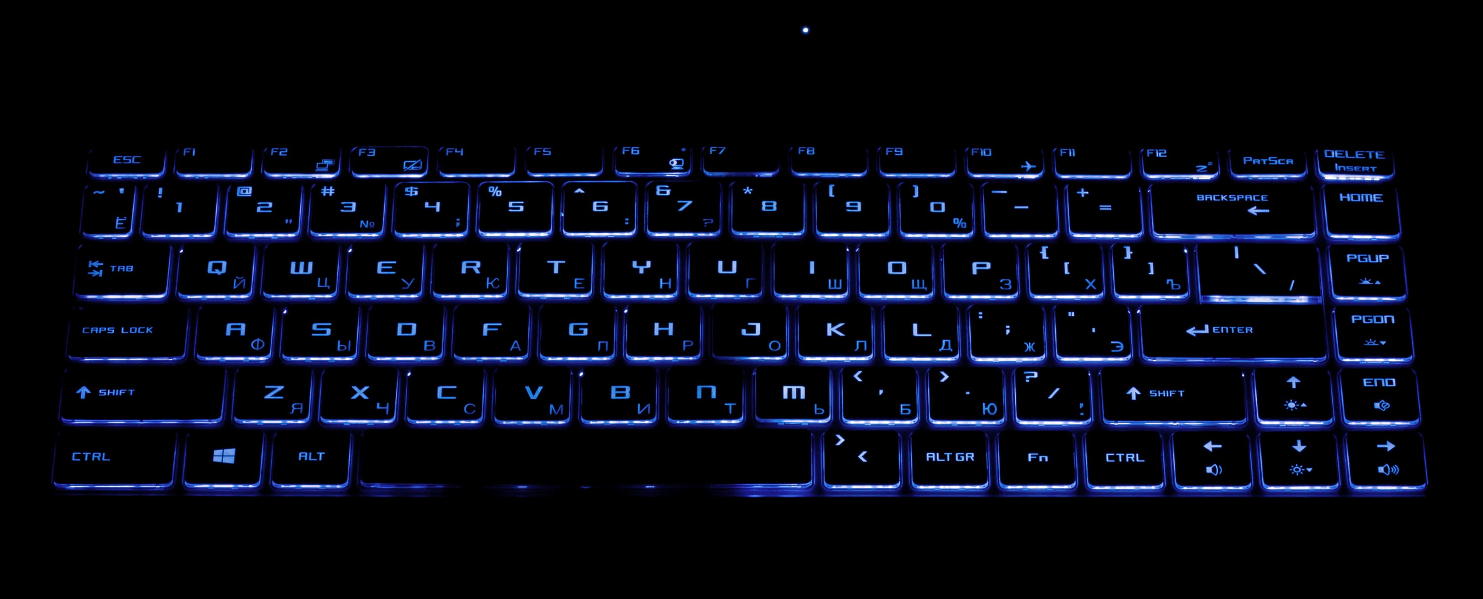 Клавиатура имеет мембранный механизм и островное расположение клавиш, кнопки в меру крупные, удобные: расстояние между центрами клавиш в одном ряду составляет 19 мм, а между их краями — 3 мм. Печатать на клавиатуре комфортно, нажатие клавиш отчетливо ощущается, звуков при печати практически нет. Ход клавиш — 1,2 мм. Имеется трехуровневая по яркости белая подсветка (четвертое состояние — выключена), подсвечиваются и символы на клавишах, и их боковины.