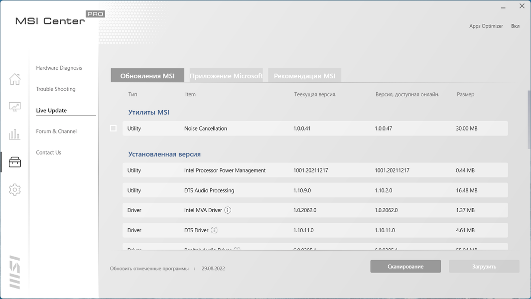 Ноутбук поставляется с ОС Windows 11 Home (домашней редакции), набором фирменных приложений, триал-версией MS Office и сетап-инициатором Yandex. Наиболее важным компонентом фирменного ПО является MSI Center.