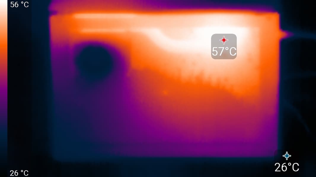 Ниже приведены термоснимки, полученные после долговременной работы ноутбука под максимальной нагрузкой на CPU и GPU (профиль High Performance):