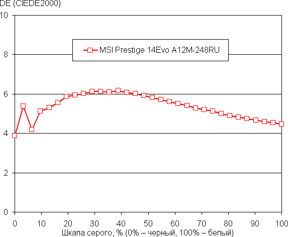 В ноутбуке MSI Prestige 14Evo A12M-248RU используется 14-дюймовая IPS-матрица с разрешением 1920×1080 пикселей (отчет edid-decode).
