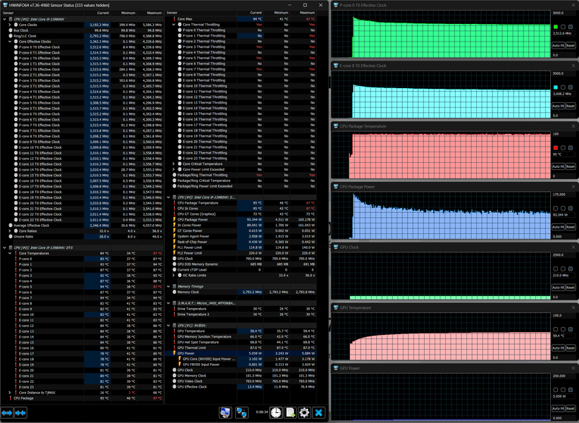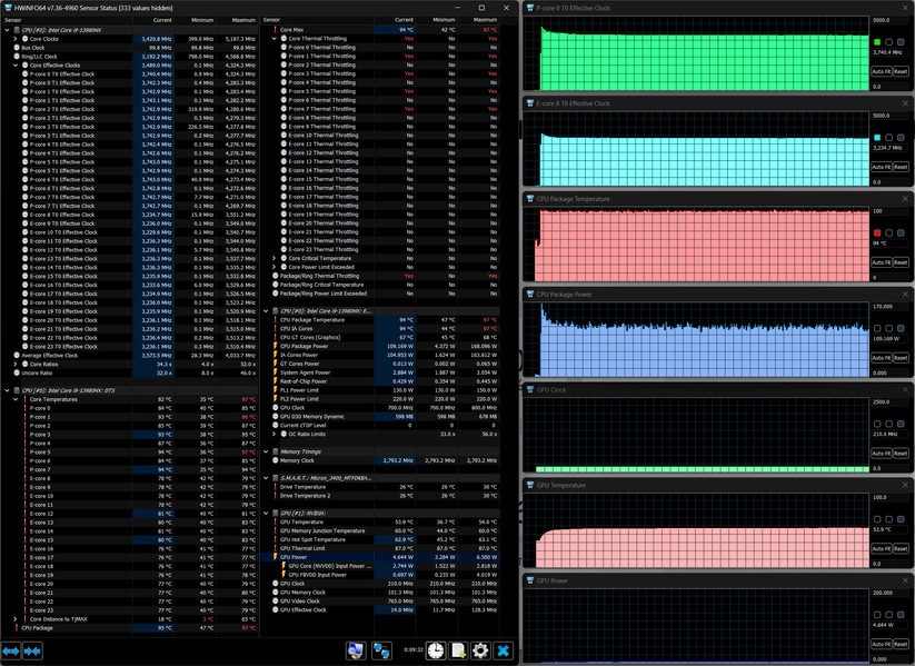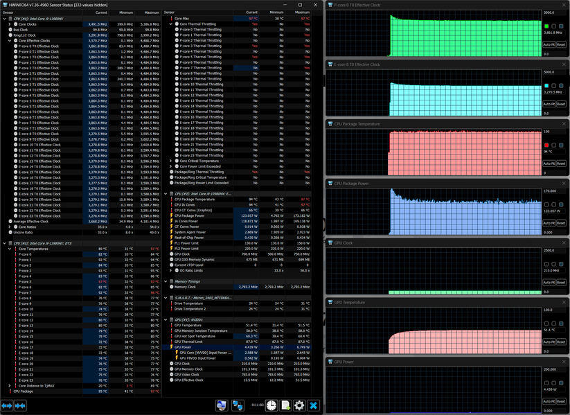 Но у данной модели практическая польза от повышения частот явно есть: в трех играх из четырех средние значения fps повысились на 9-10 процентов, минимальные тоже возросли, порой даже более заметно. Лишь в четвертой игре значения увеличились незначительно, и можно сказать, что разгон в MSI Raider GE78HX 13VI-095RU реально работает, хотя проявляется это не во всех случаях одинаково.