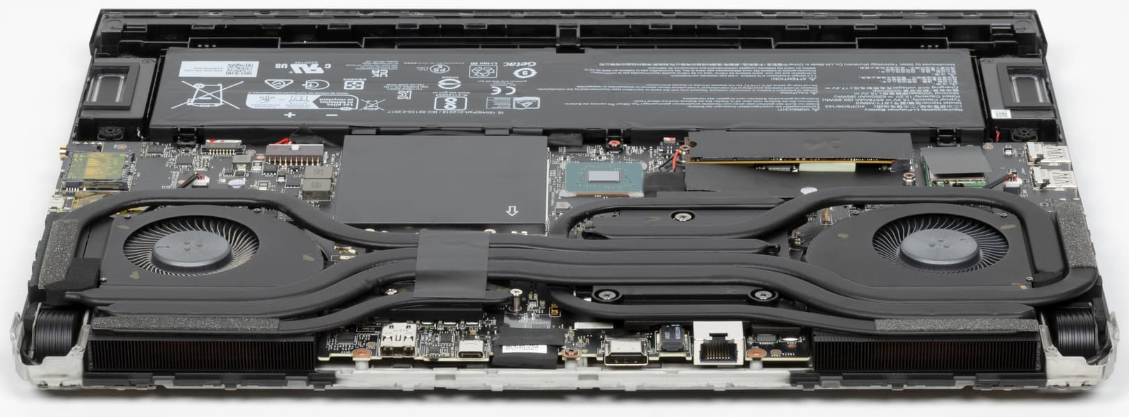 Система охлаждения в тестах чаще всего не может обеспечить отсутствие перегрева и тротлинга, но то же самое наблюдается у подавляющего большинства современных игровых ноутбуков, у которых зачастую еще и внешние поверхности сильно нагреваются, чего мы не наблюдали у данной модели.