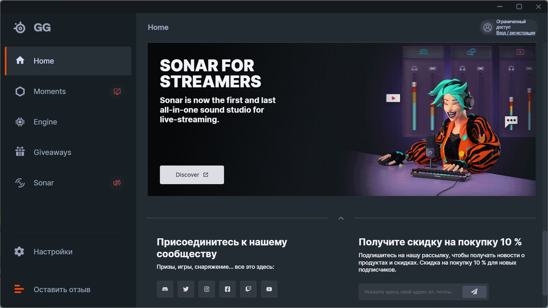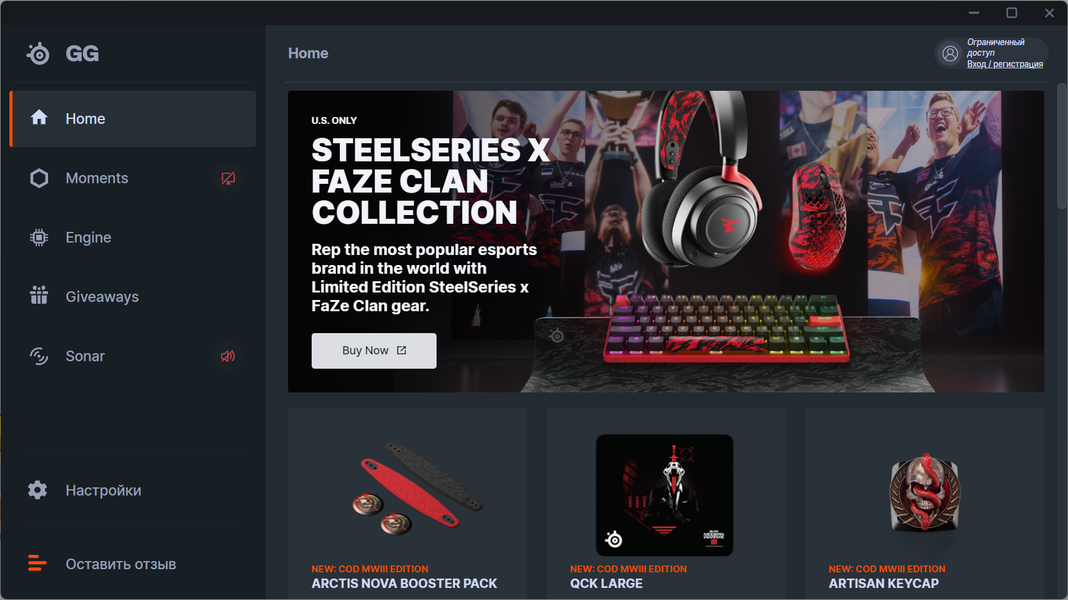 Управление всей этой красотой осуществляется с помощью утилиты SteelSeries GG, в данном случае используется версия 29.1.0.