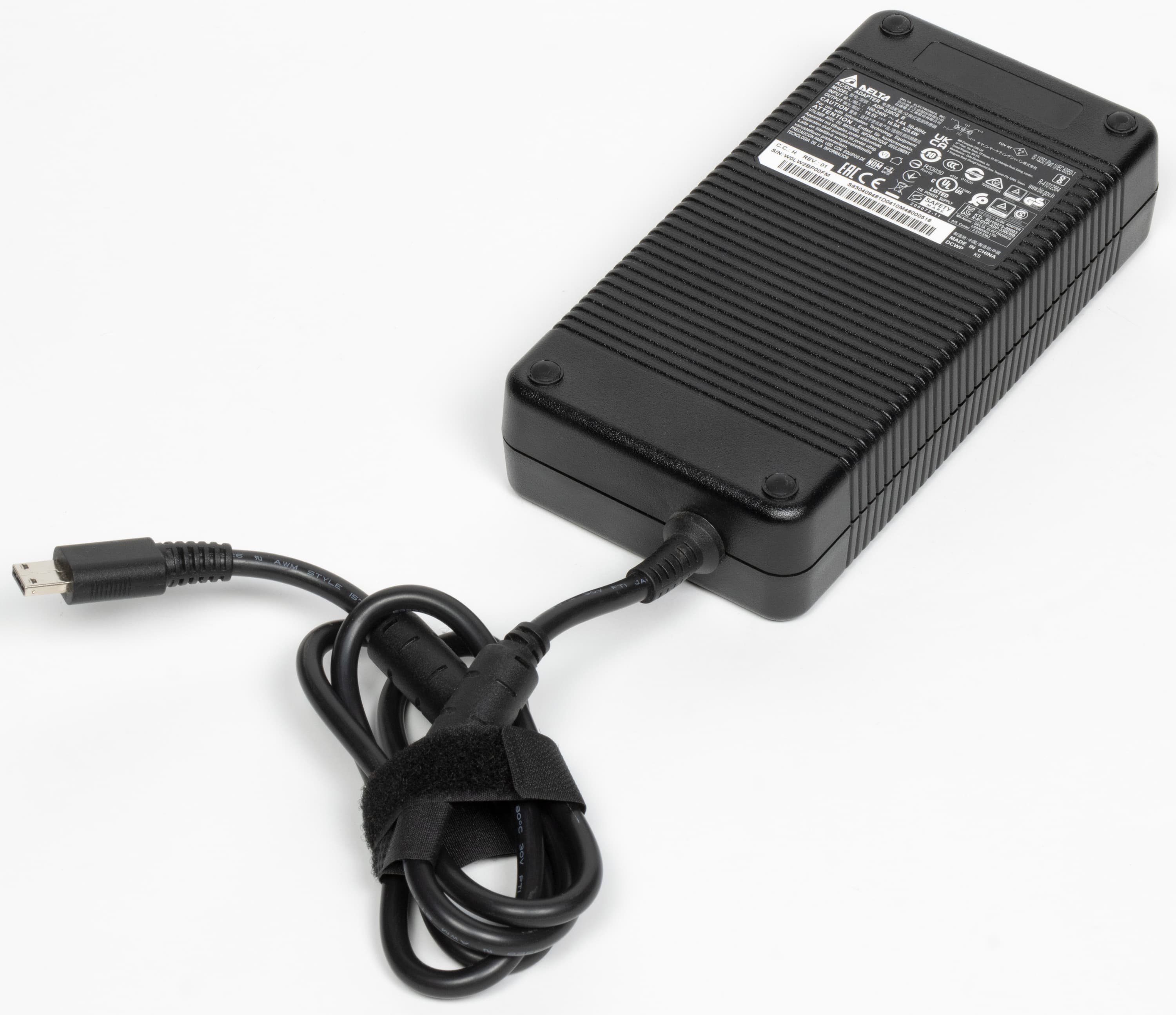 Понятно, что нашлись и замечания. Ноутбук получился тяжелым, особенно если добавить вес штатного блока питания на 330 ватт, но при работе в офисных приложениях и для зарядки батареи можно использовать гораздо более компактный адаптер с поддержкой PD 20V@5A, а если речь только о зарядке, то и PD 20V@3.25A.