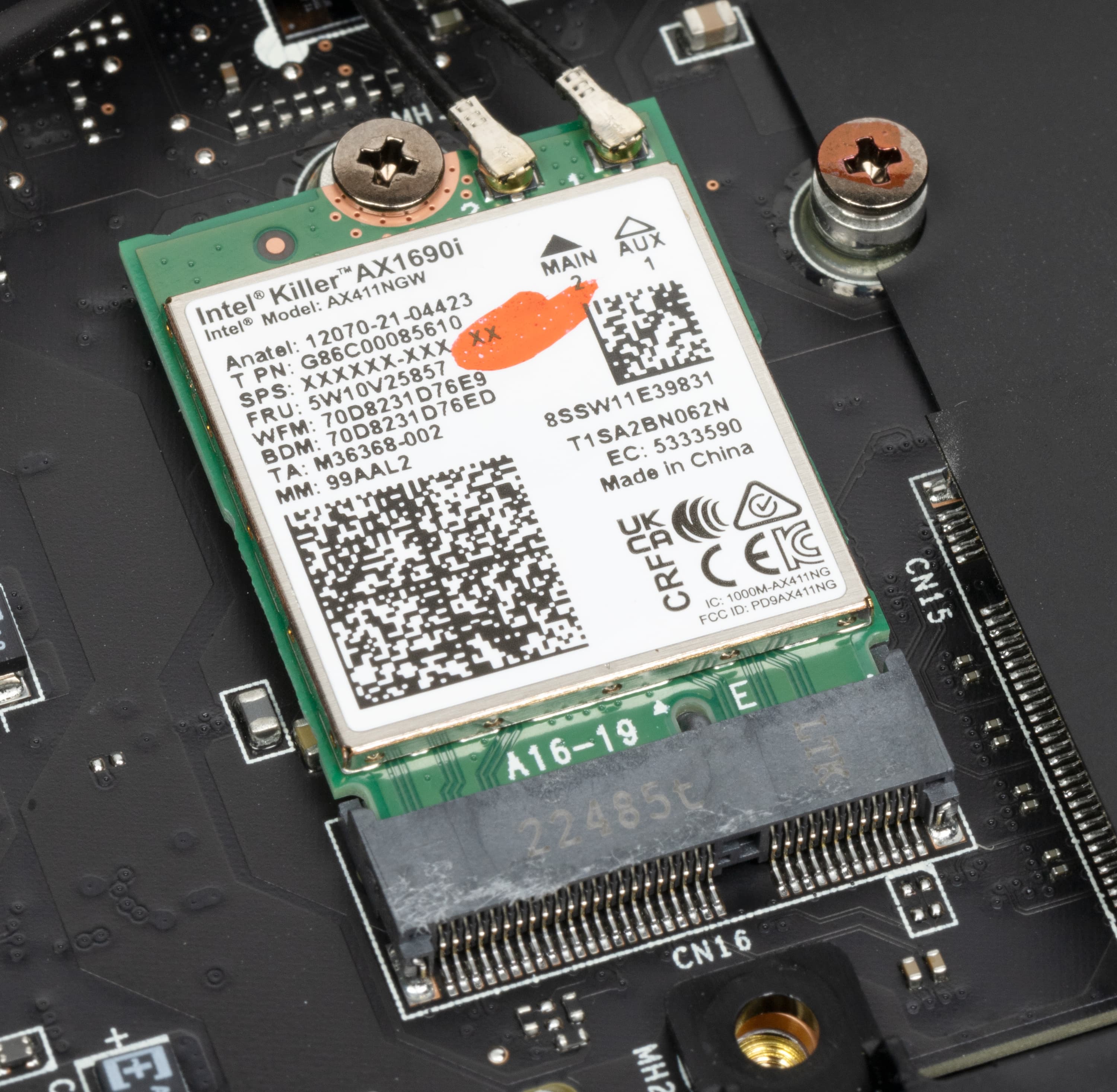 | Беспроводная сеть Wi-Fi | Wi-Fi 6E (Intel Killer AX1690i, IEEE 802.11ax, 2,4/5/6 ГГц, MU-MIMO) | |