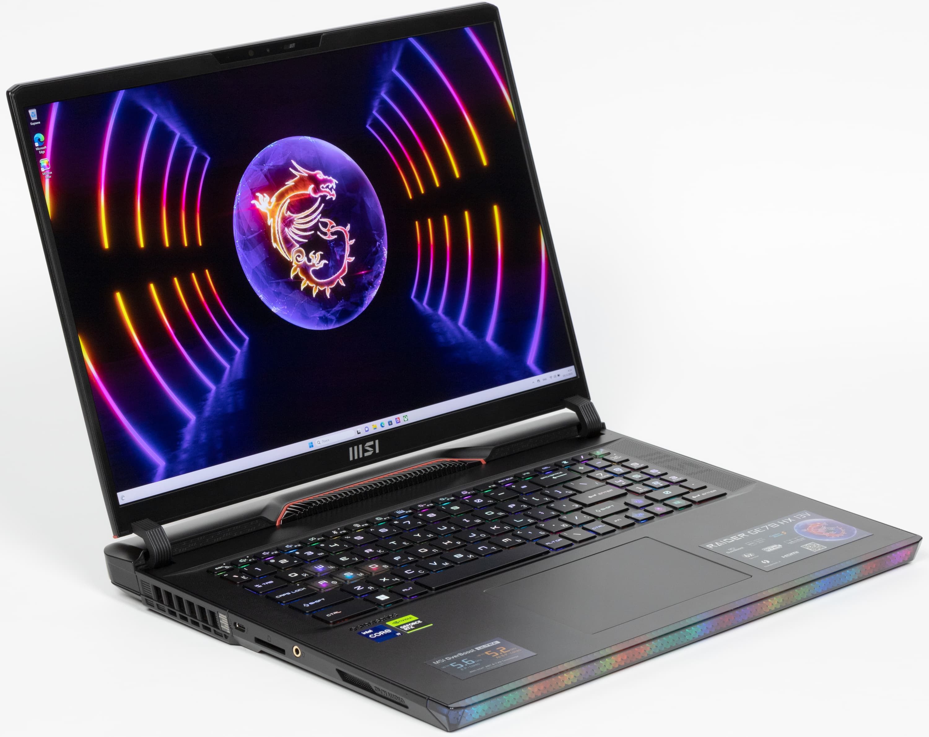 Мы рассмотрим новейший и наиболее продвинутый ноутбук MSI Raider GE78HX 13V с экраном QHD 17 дюймов. Как водится у компании MSI, он предлагается в ассортименте: на официальном сайте компании сегодня имеются семь вариантов с процессорами Intel Core i9-13980HX, Core i9-13950HX и Core i7-13700HX, видеокартами Nvidia GeForce RTX 4080 Laptop и GeForce RTX 4090 Laptop, ОЗУ 32 или 64 ГБ DDR5, SSD на 1 или 2 ТБ. Все модели оснащены современным адаптером Wi-Fi 6E, есть и 2,5-гигабитный контроллер Ethernet. Имеется богатый набор интерфейсных портов, включающий один Thunderbolt 4, и батарея с внушительной емкостью около 100 Вт·ч. Поставляются ноутбуки с ОС Windows 11 Home и внешним блоком питания мощностью 330 Вт.