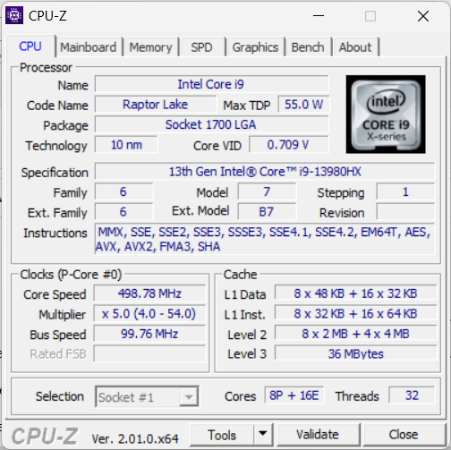 | Процессор | Intel Core i9-13980HX (8+16 ядер/32 потока, до 4,0/5,6 ГГц, 45—157 Вт) | |