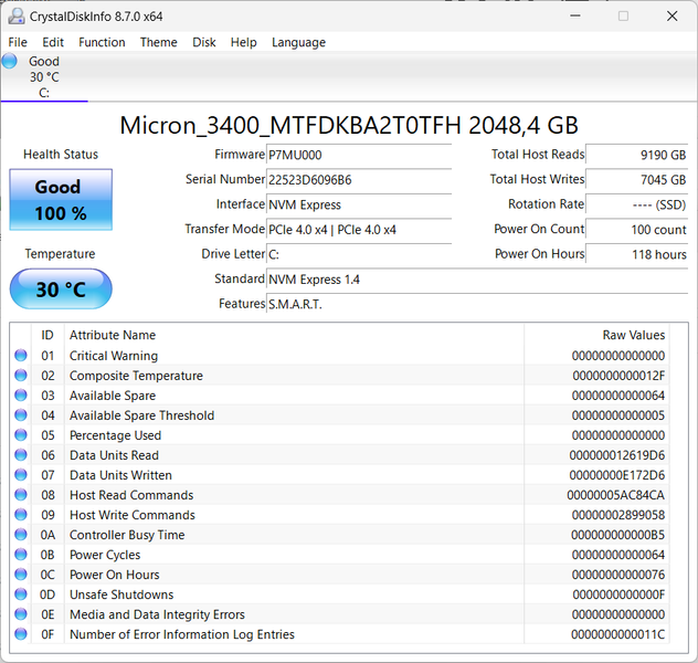 | Накопитель | 1 × SSD 2 ТБ (Micron_3400_MTFDKBA2T0TFH, M.2, NVMe, PCIe 4.0 x4) есть свободный слот М.2 | |