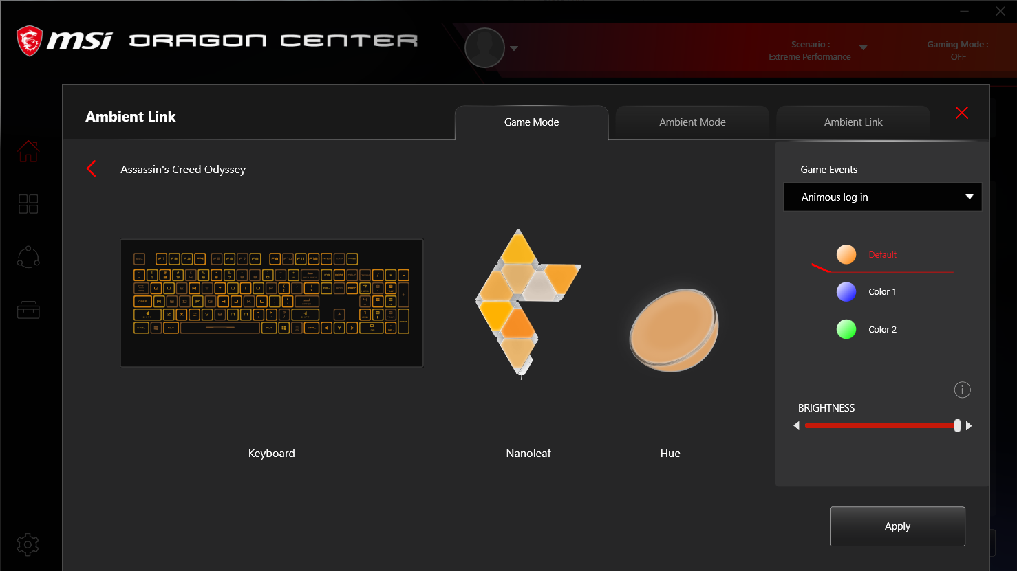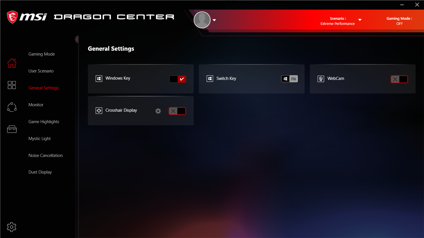 Также в утилите есть раздел мониторинга (только здесь можно увидеть скорость вращения вентиляторов), можно выбрать режим зарядки батареи (подробнее см. в соответствующем разделе) и сделать некоторые полезные настройки (включить/отключить камеру, экранный прицел и кнопку Win, поменять местами кнопки Fn и Win). В разделе Mystic Light можно настроить подсветку клавиатуры, все четыре ее перебираемых сочетанием клавиш варианта. А если вы готовы для смены стиля запускать утилиту, то в ней можно сохранить несколько профилей таких настроек. Заодно свечение можно синхронизировать с внешними устройствами, из которых на текущий момент поддерживаются световые панели Nanoleaf и умные светильники Philips Hue.