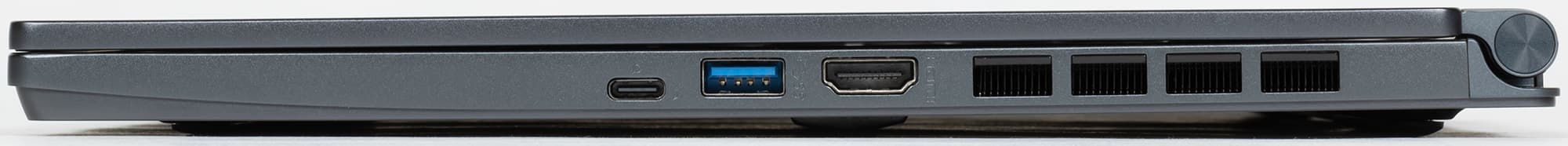 На правом боку расположились еще один порт USB 3.0, видеовыход HDMI и порт USB 4.0 Type-C (с поддержкой Thunderbolt 4, DisplayPort и быстрой зарядки Power Delivery).