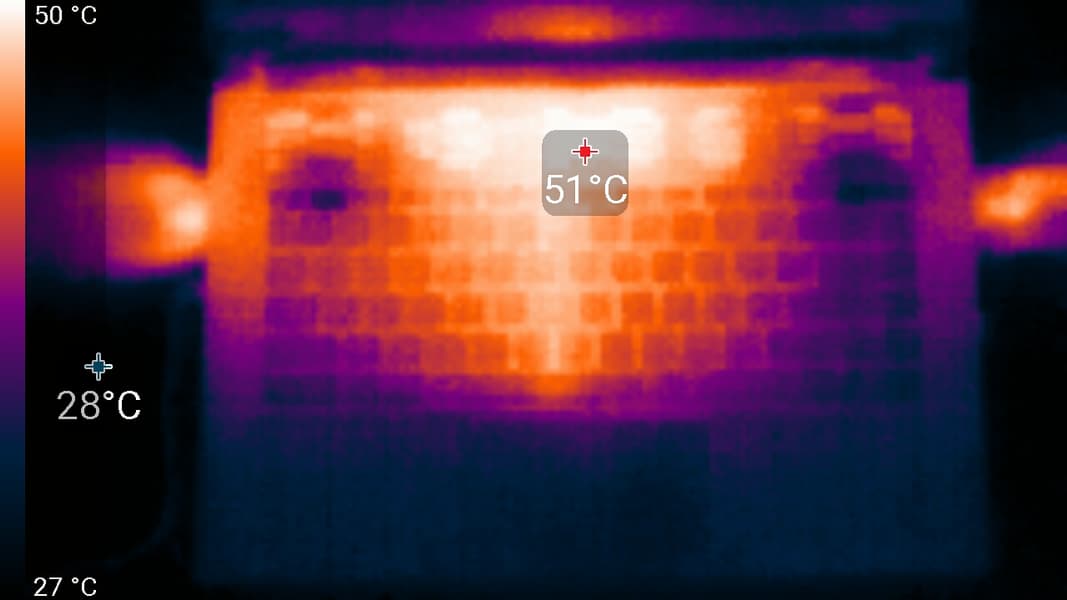 На рабочей поверхности за клавиатурой и на днище корпуса расположены вентиляционные отверстия в виде стилизованной сотовой структуры с довольно большой площадью. Через них кулеры всасывают холодный воздух, а выдувают нагретый — назад и направо/налево.