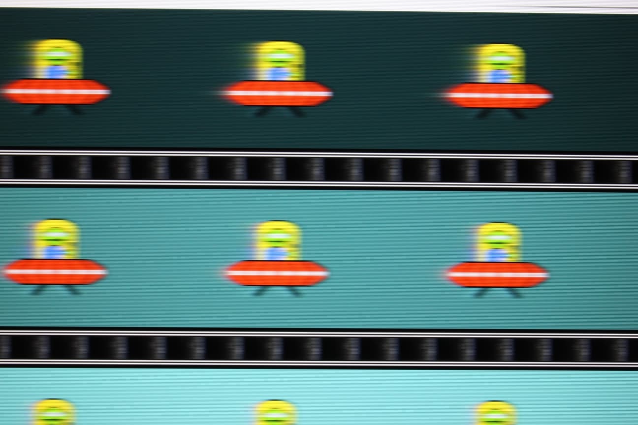 Для наглядного представления о том, что на практике означает такая скорость матрицы и какие артефакты может вызвать разгон матрицы, приведем снимок, полученный с помощью движущейся камеры. Такие снимки показывают, что́ видит человек, если он следит глазами за двигающимся на экране объектом. Описание теста приведено тут, страница с самим тестом тут. Использовались рекомендованные установки (скорость движения 960 пиксель/с), выдержка 1/15 с.