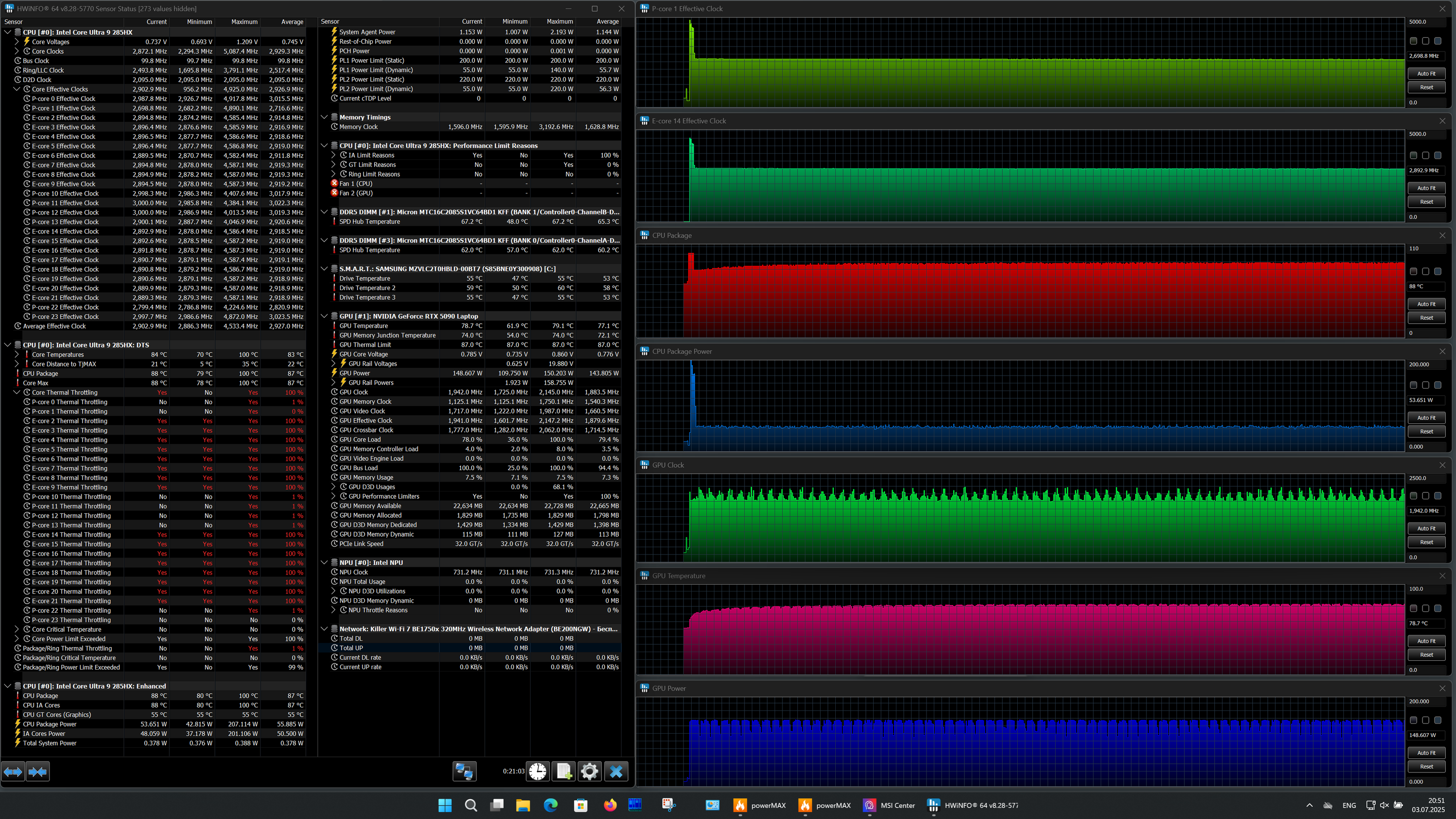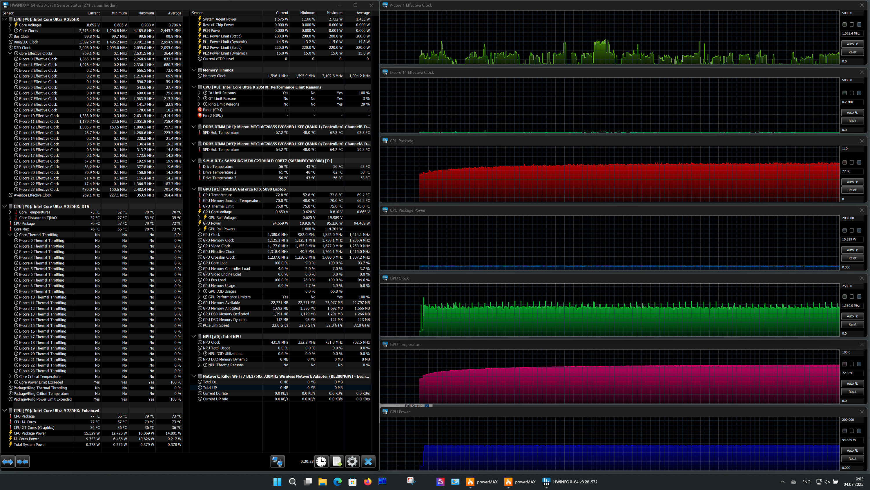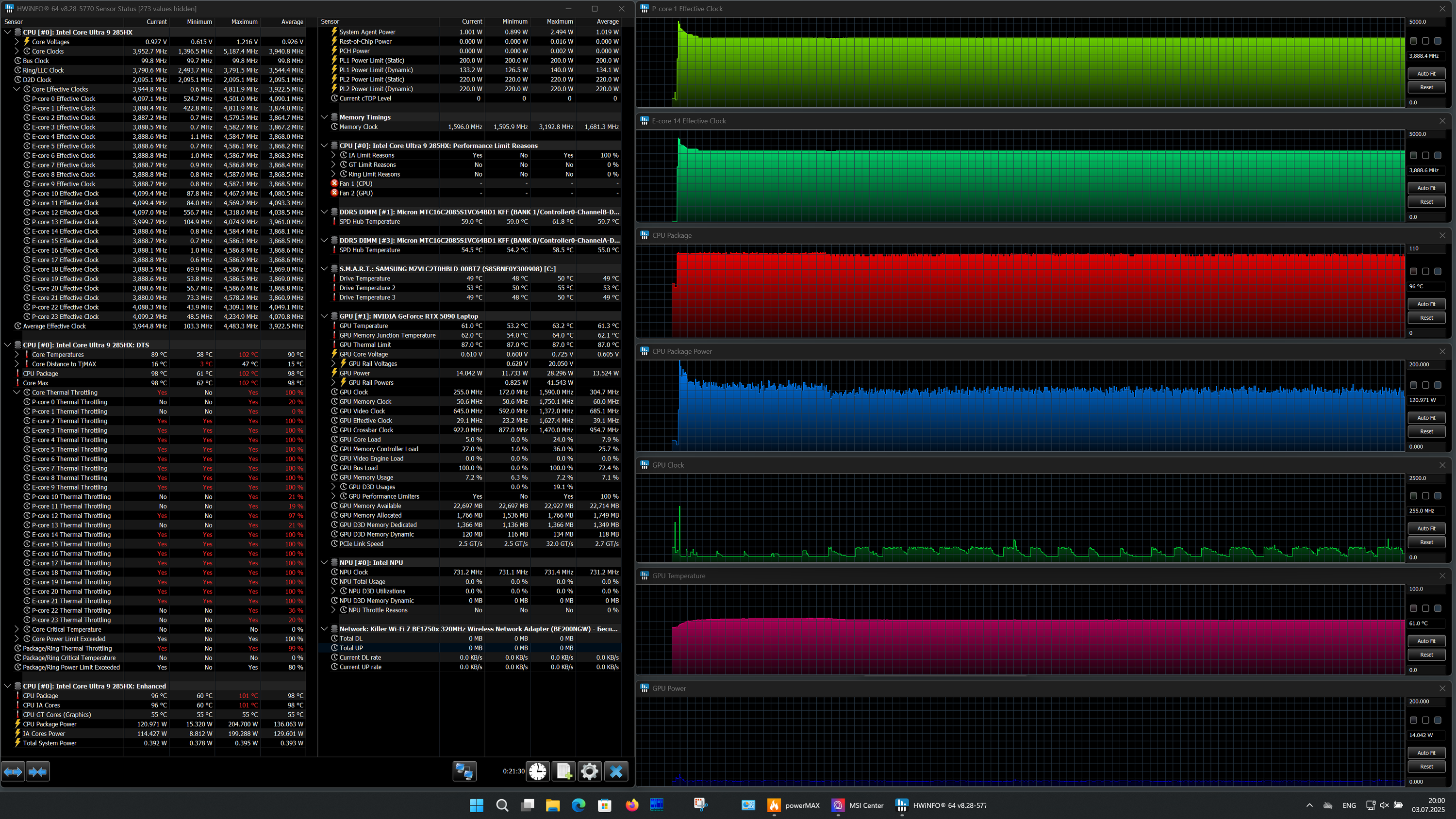 | Процессор | Intel Core Ultra 9 285HX: 8 P-ядер/8 потоков, 2,8 ГГц (Turbo 5,5 ГГц), 16 E-ядер/16 потоков; 2,1 ГГц (Turbo 4,6 ГГц); TDP 45—55 Вт (Turbo 160 Вт), Tjmax 105 °C; NPU AI Boost (13 TOPS) | |