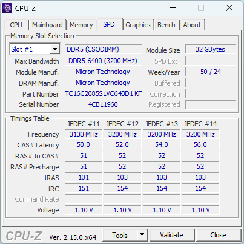 На стикерах видно, что это DDR5-6400 Micron MTC16C2085S1VC64BD1. Если заменить оба модуля на 48-гигабайтные, можно достичь теоретического максимума комплектования оперативной памятью — 96 ГБ.