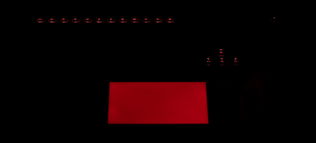 Тачпад оснащен динамической подсветкой, так же как и клавиатура (per key RGB), но на последней можно реализовать переходы и переливы, а тачпад только меняет цвет. На клавиатуре подсвечиваются символы и немного — их контуры. Зона подсветки под каждой клавишей видна, но она не бросается в глаза и потому не раздражает. Распределение света и специфика маркировки позволяют хорошо видеть латинские символы в темноте, а кириллицу различить сложно.