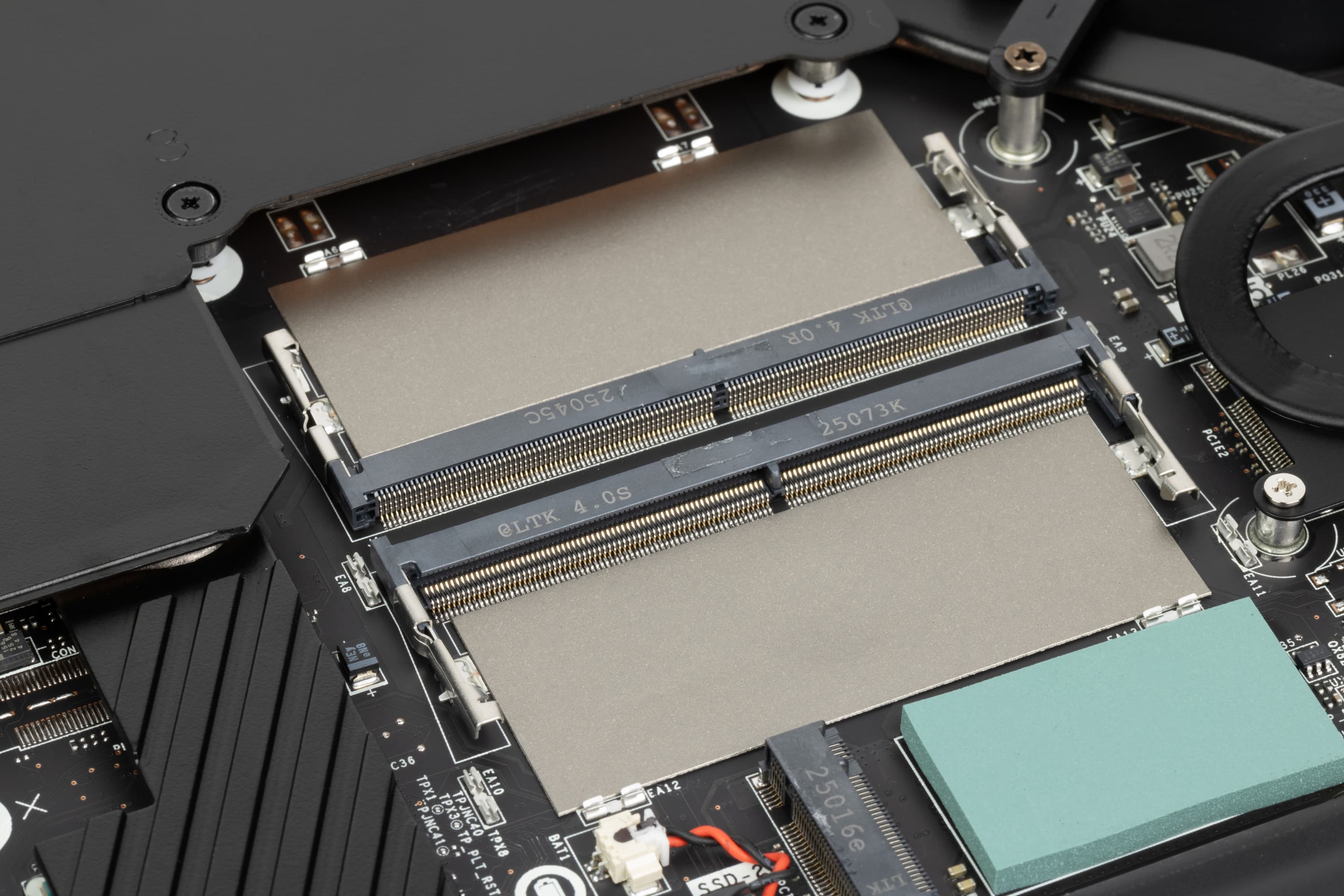 С завода ноутбук приезжает, будучи экипированным двумя модулями по 32 ГБ, которые работают в двухканальном режиме.