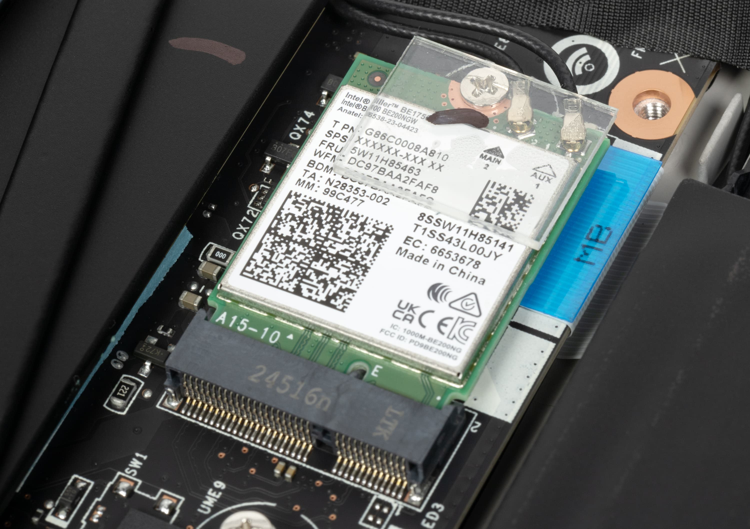 | Wi-Fi | Intel Killer BE200NGW, Wi-Fi 7, 802.11be | Intel Killer BE200NGW, Wi-Fi 7, 802.11be | Intel AX411NGW, Wi-Fi 6E, 802.11ax |